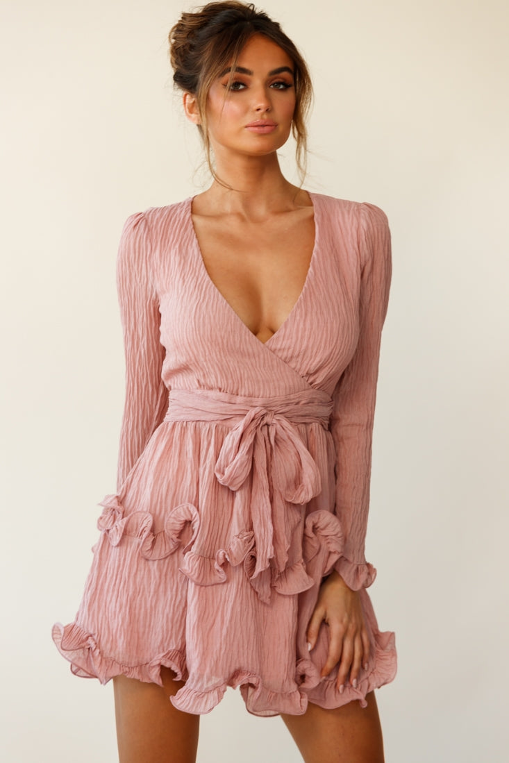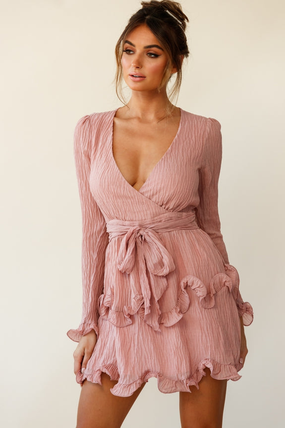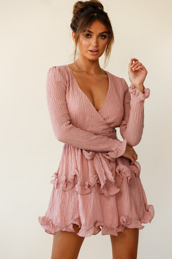 Make an entrance in our flirty and ultra feminine Greta dress. Featuring a V-neckline, long sleeves, flattering wrap front and tiered ruffles around the skirt. We love the soft chiffon fabric with unique crinkled texture. Team it with some strappy heels and gold hoops for a look we are loving.