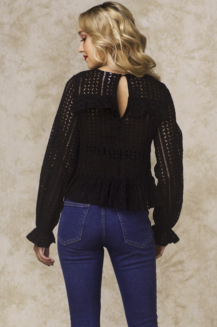 Gwendoline Mesh Long Sleeved Ruffled Shirt Black