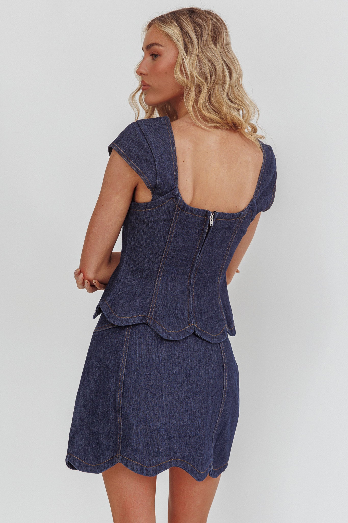 Twirl the day away in our gorgeous Halen mini skirt. It features a scalloped hem and is perfect for a brunch date with your besties. Team it with its matching top, kitten heels and a tote for a look we are loving.