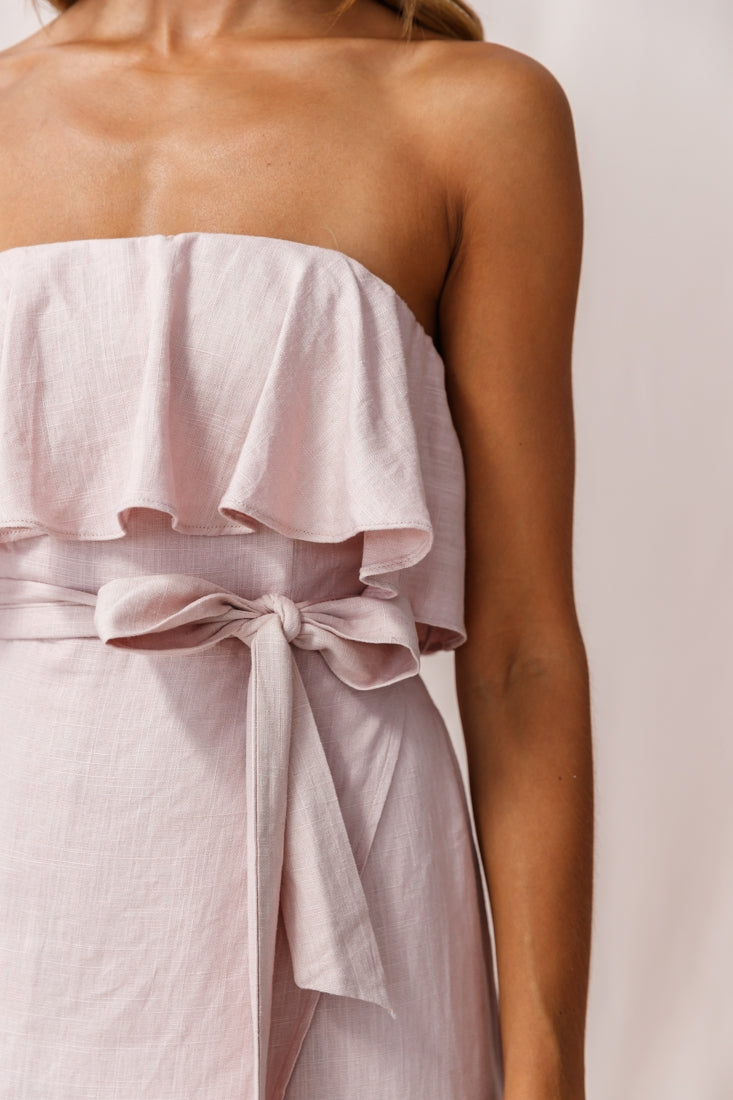 Feel like you've escaped to an island paradise in our breezy Hamilton dress. Featuring an on-trend bandeau cut with a ruffle layer around the bust, separate waist tie, wrap style midi length skirt and most importantly, pockets! Perfect for those warm, sunny days strolling the markets with bae or coffee with the girls. Team it with gold hoop earrings and tan sandals for a look we are loving.