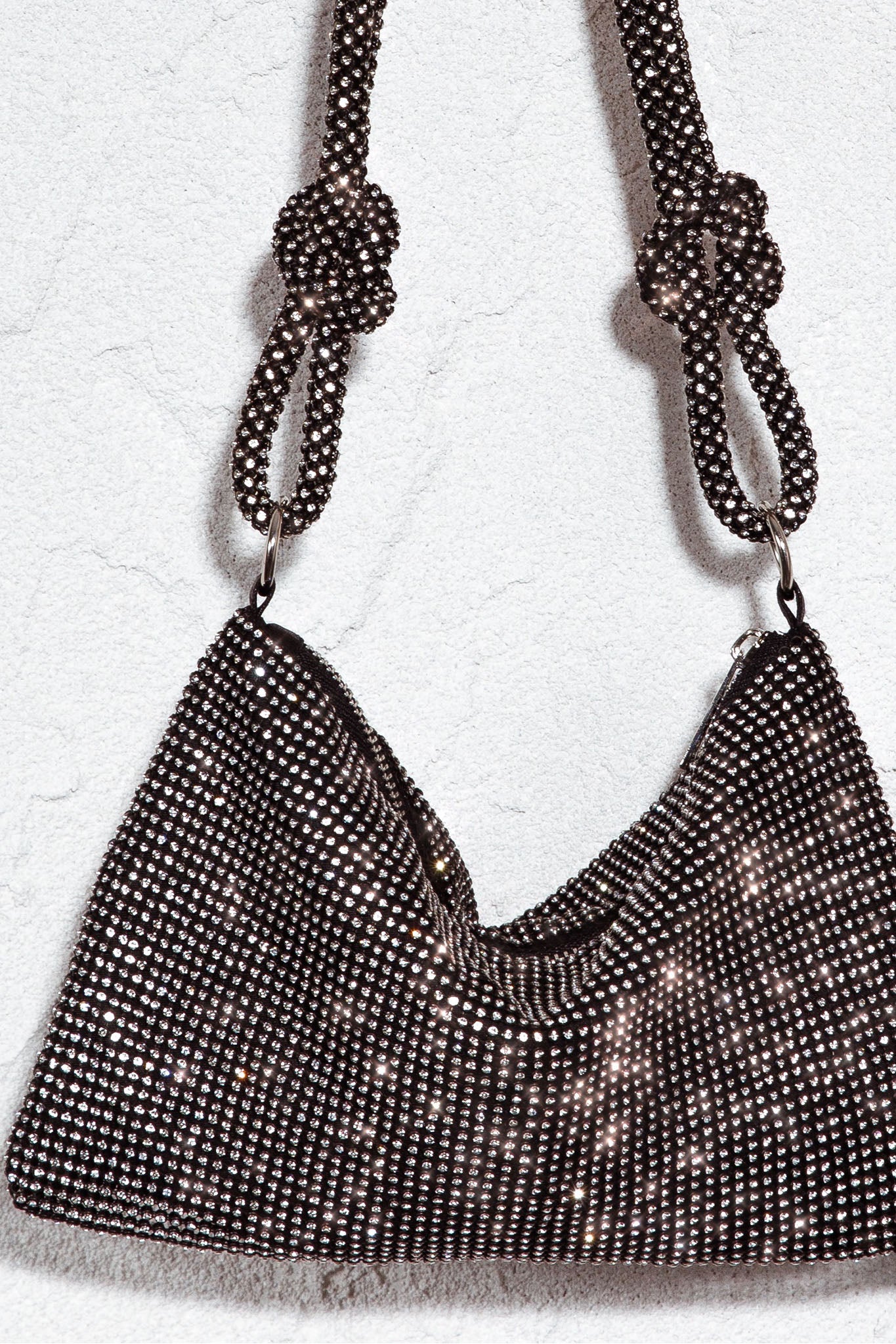 Steal the show with our Harper bag. Featuring a knotted strap and diamante embellishment throughout. It's the on-trend luxe life look we are living for and is perfect for a glam girls' night out. Team it with a satin mini dress for a head-turning look.