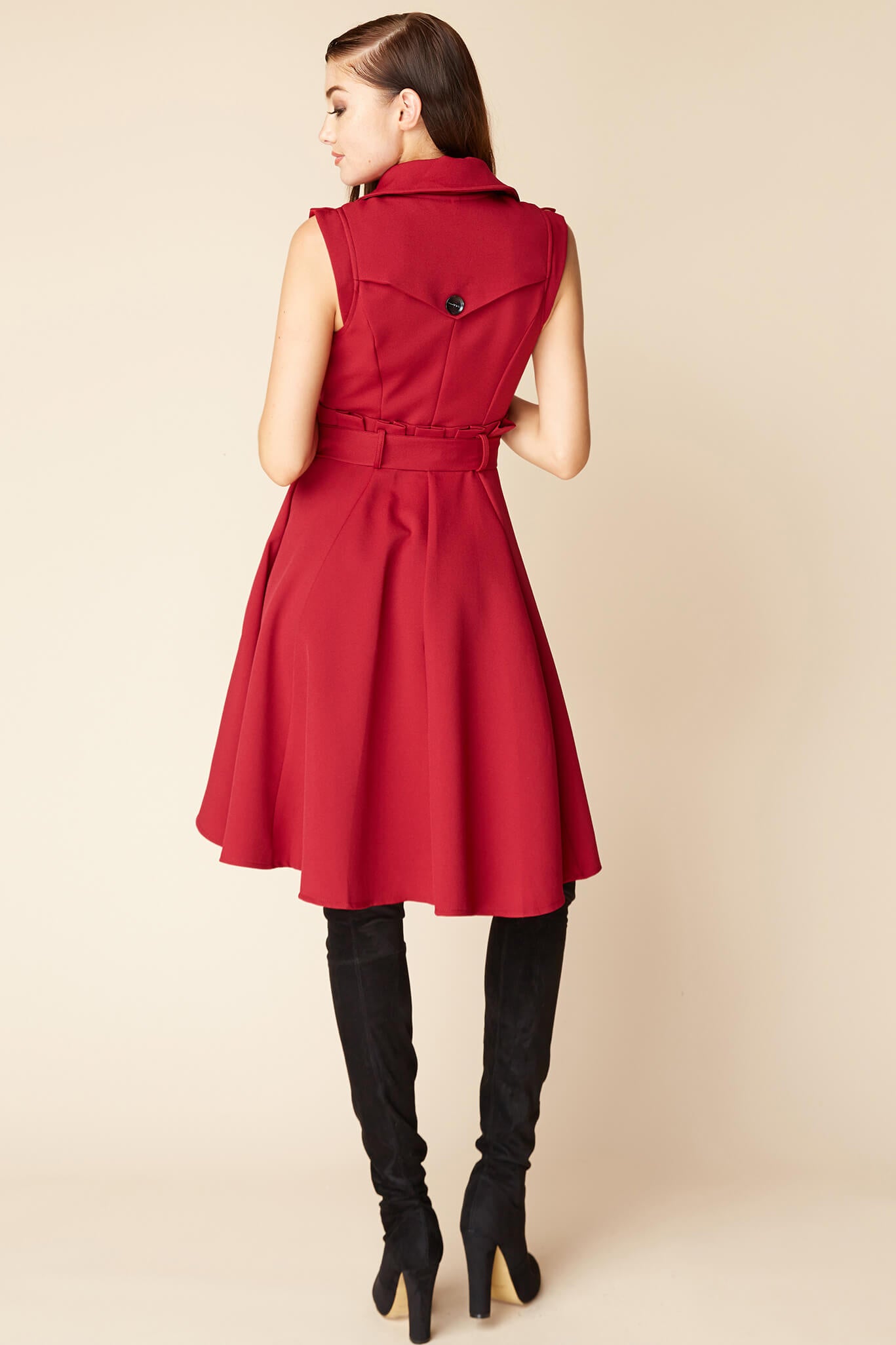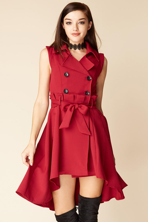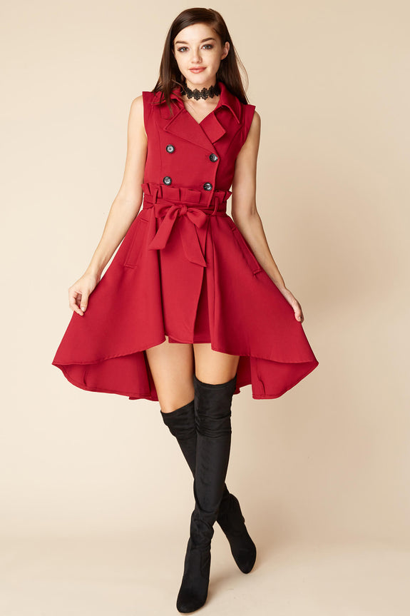 Take outerwear anywhere with this luxe trench dress- beautiful illusion skirt design with belted waist and hi- low hemline insinuate that you don't need super sleuthing skills to discover a beautiful sense of style.