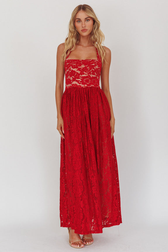 Hendrix Halterneck A-Line Lace Maxi Dress Cherry