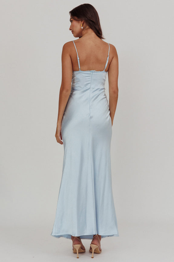 Her theory Lace Trim Maxi Dress Steel Blue