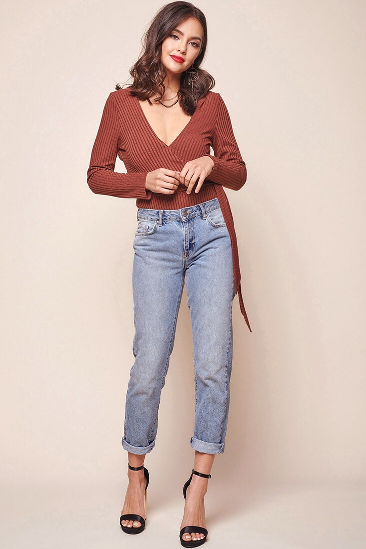 Body Party! Wrap Bodysuit is a great staple and can be sported with almost any look. Ribbed cotton texture make for a stunning piece. Wear under jeans or a high-waisted skirt and a leather jacket.