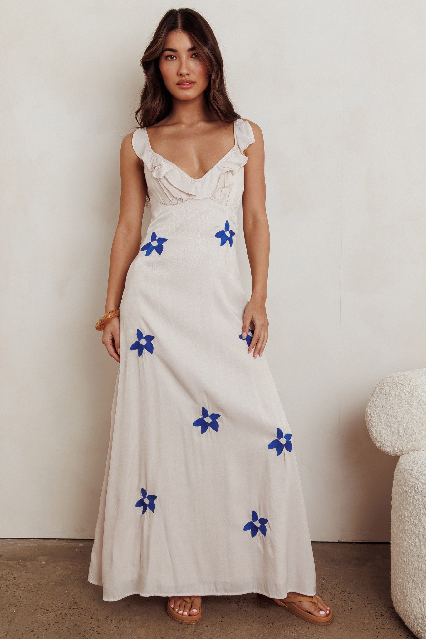 You'll feel like packing your bags and jet-setting to an island paradise in our Hibiscus maxi dress. We are in love with its breezy low neck and ruffle strap design. Team it with sandals and a straw tote for a look that will turn heads.