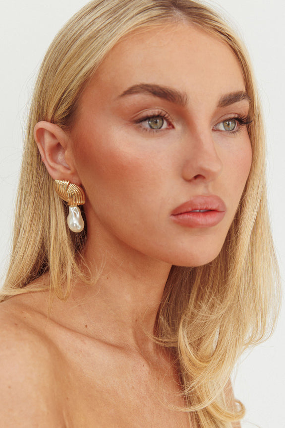 Elevate your look with our stunning High Season earrings. They feature a pretty baroque pearl droplet design and a gold finish and are perfect for a date night or a glam event. Team them with our Well Versed dress for a look that will make jaws drop.