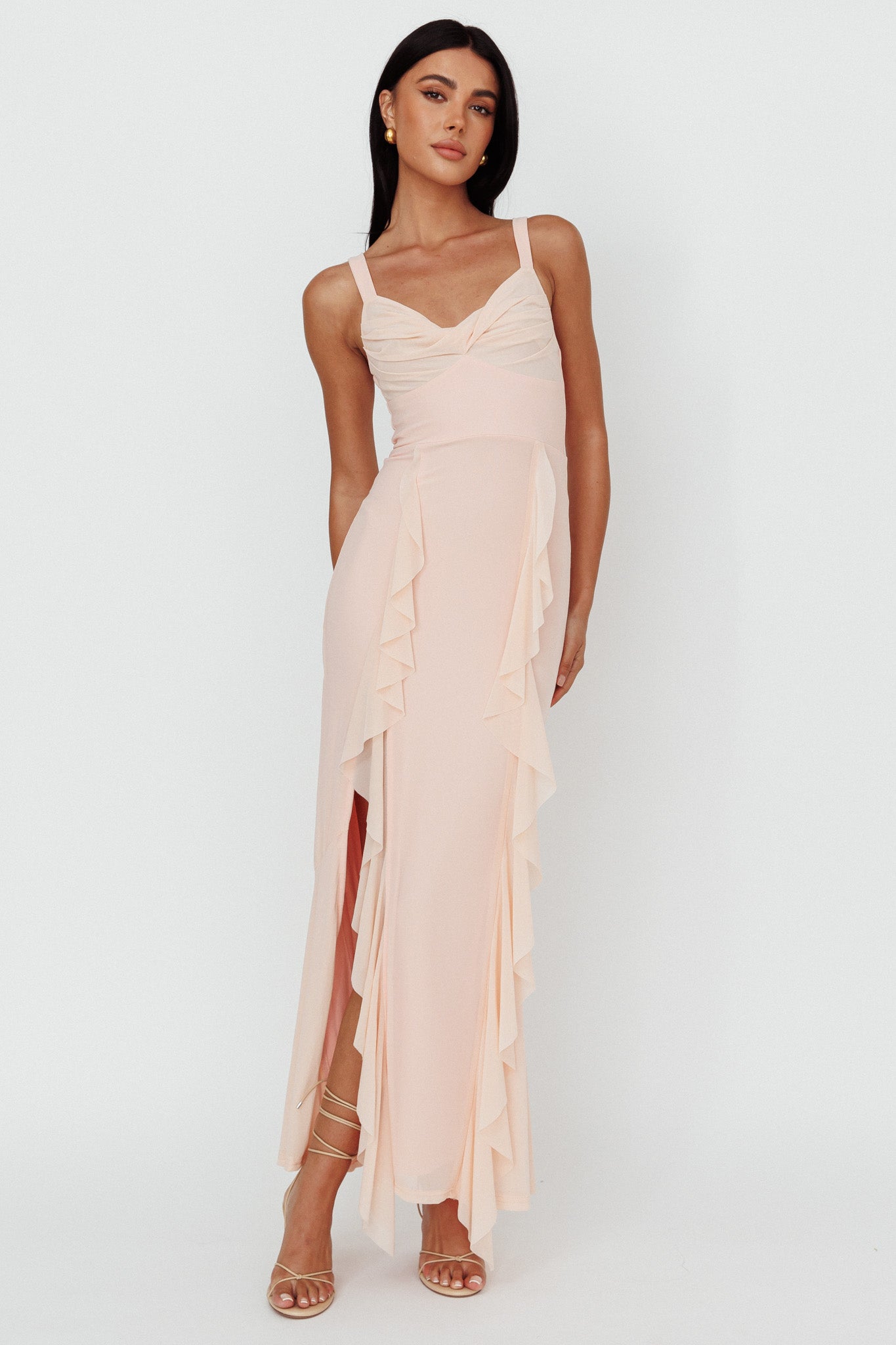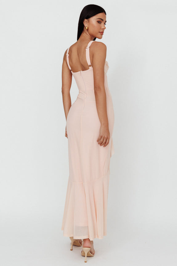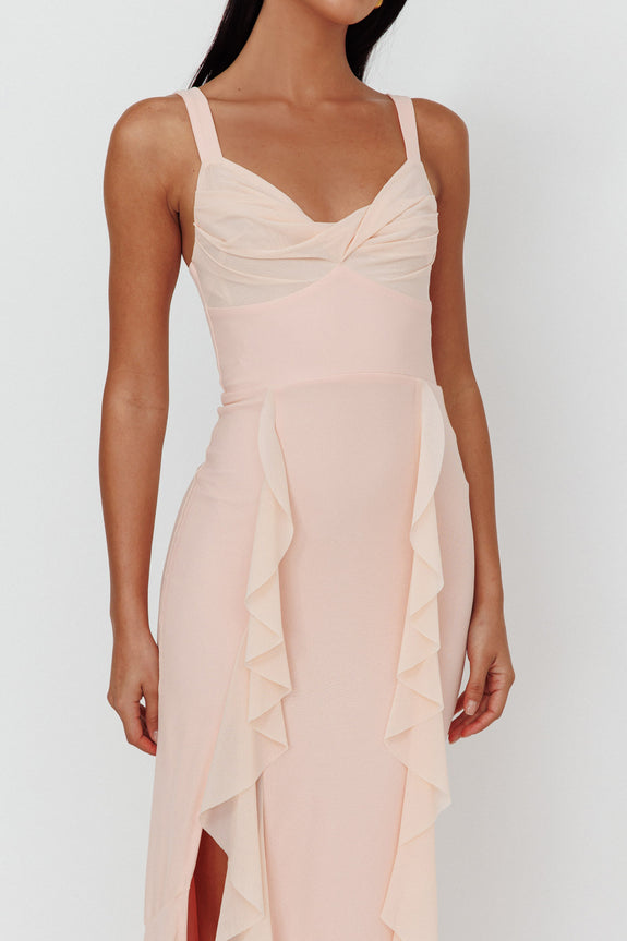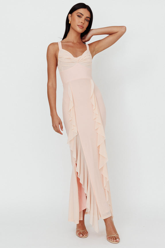 Hollianna Ruffle Trim Split Maxi Dress Champagne