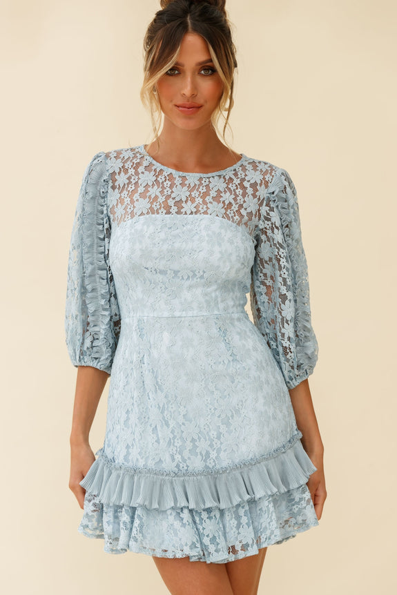 Chic and sweet, that's our Home Again dress. It's the picture of innocence with its girly lace throughout and feminine frill inserts. Perfect for a bridal shower or special birthday occasion. Team it with pearl accent jewelry and nude tie-up heels for an elegant look we are in love with.