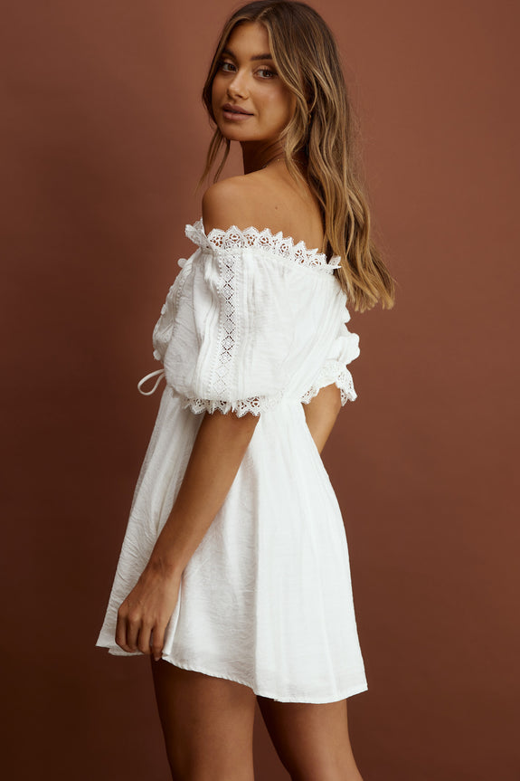 Girl next door meets boho chic in our super cute Homeward dress. We are loving the crochet lace detail and on-trend, off-shoulder style. Perfect for meeting up with your girls for coffee and laughs. Team it with your fave tote and mules for a look we are loving.