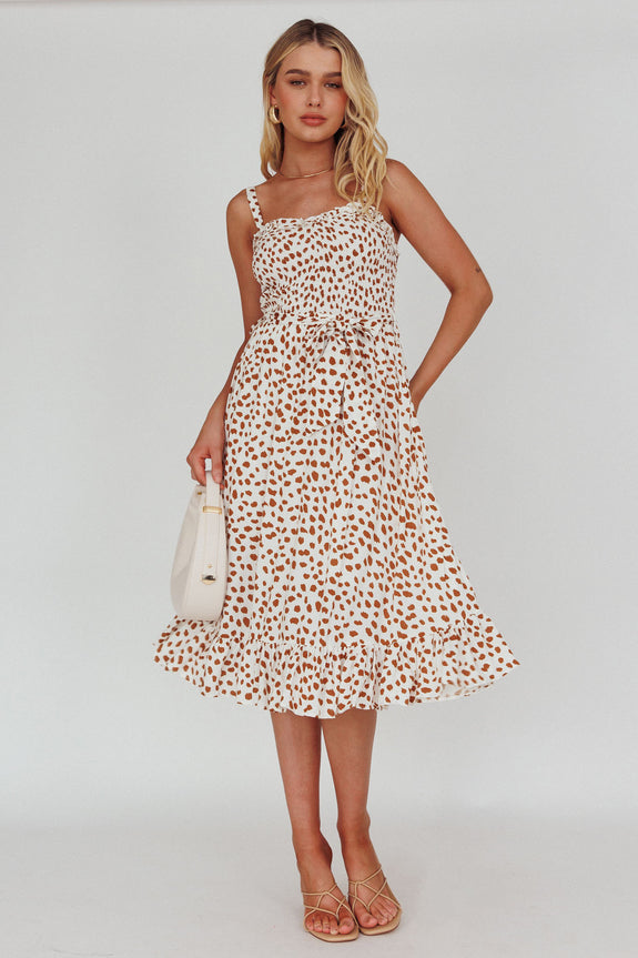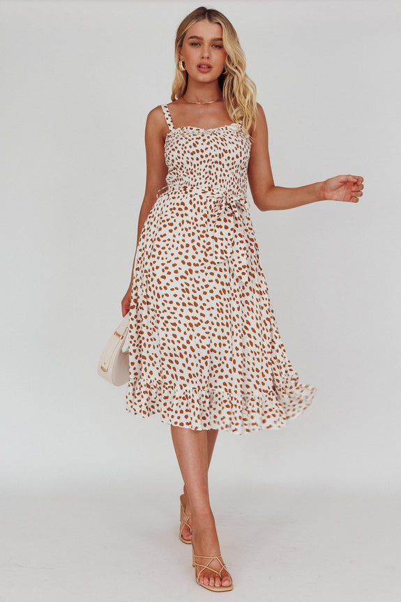 As sweet as honey! We are in love with this breezy dress, perfect for a sunny day picnic with your girls or strolling the markets looking for vintage treasures. Featuring a frill-trimmed, shirred bust and separate waist belt. It would look super cute with a straw tote and leather sandals for an on-trend look.