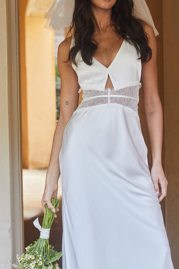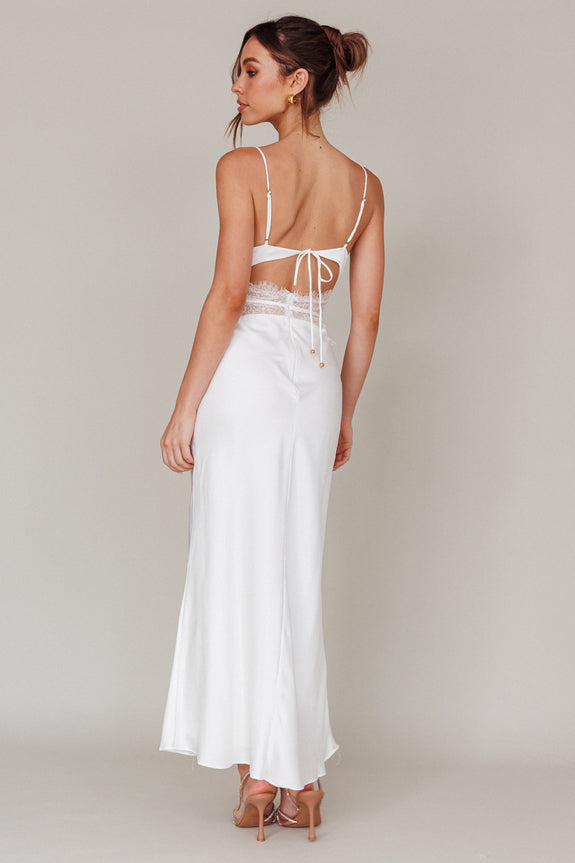 You'll go straight to the best-dressed list in our pretty Honeybee maxi dress. Perfect for a wedding or special occasion. We are in love with its lace insert detail and delicate tie in the back. Team it with white heels and a clutch for an unforgettable look.
