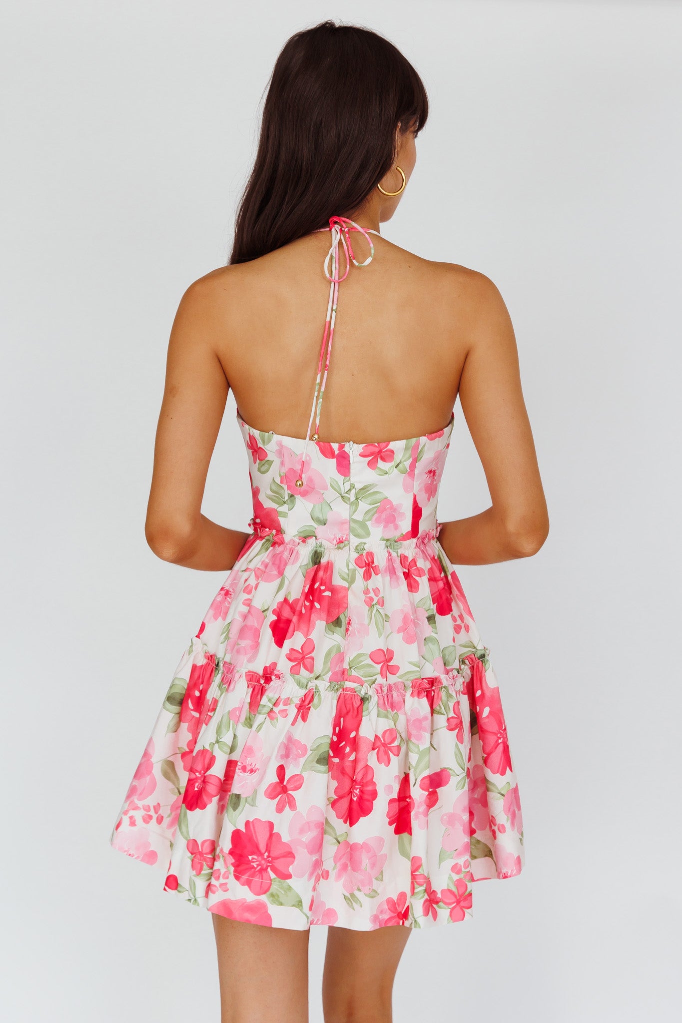 Hey there, doll! You are serving looks in our adorable Horizons mini dress. Featuring a halterneck and frill trim. It's perfect for a mimosa brunch with your besties! Team it with white, tie-up heels and a tote for a look that will turn heads.