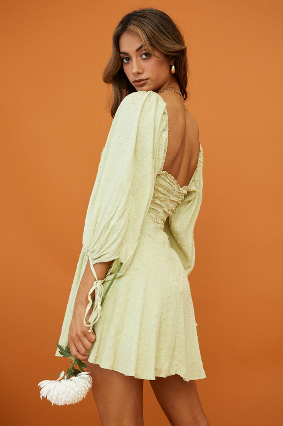 Hey babydoll! You are melting hearts in our adorable Illia dress. Featuring three-quarter balloon sleeves and the sweetest frill trim detail in the bodice. Perfect for a flirty date with your beau teamed with tan mules and a tote. Super cute!