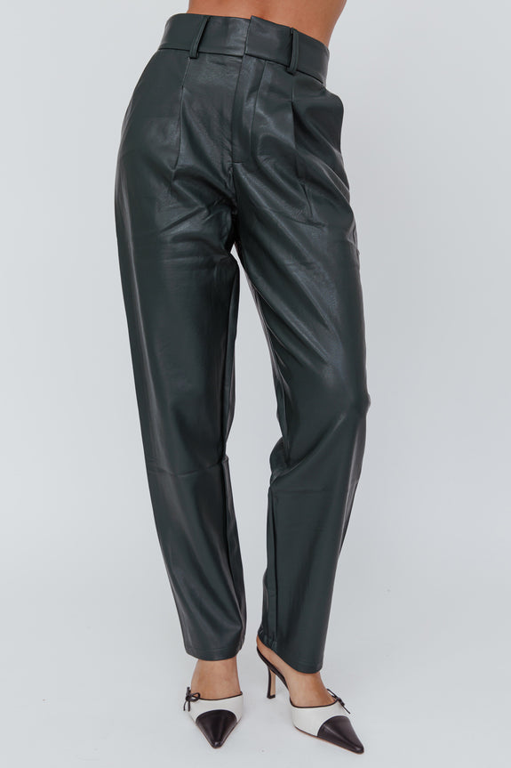 In Theory Faux Leather Pants Hunter Green
