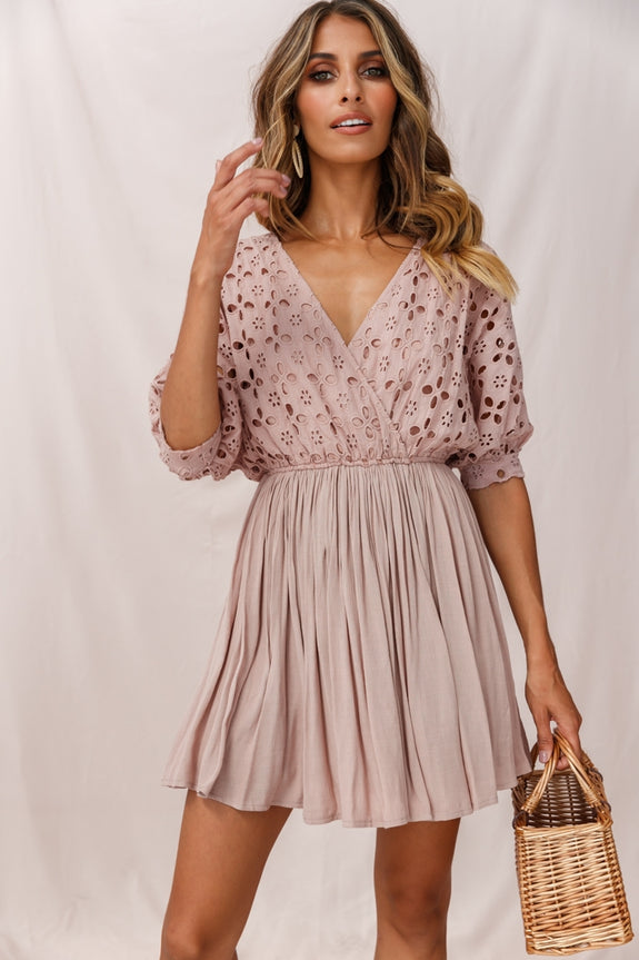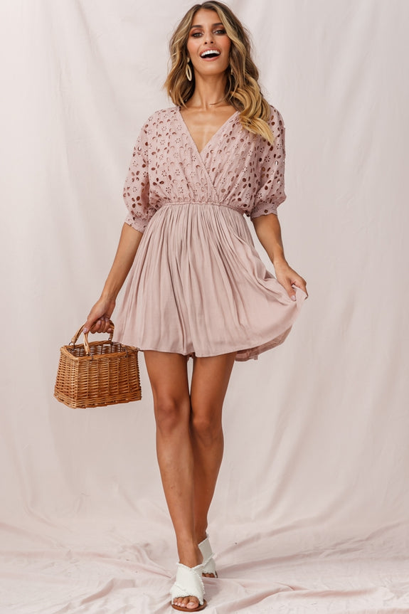 Feminine and fun, Indi is a free spirit who likes long road trips through the desert with her besties, singing Britney's greatest hits at the top of her lungs. Channel those boho vibes in our super cute Indi dress. Partially lined, it features a pretty broderie anglaise fabric throughout the torso, elasticated waist and breezy swing skirt. We're loving the on-trend puff sleeves and the back that string-ties together at the top. Pair it with tan cowboy boots and hoop earrings for a boho vibe we are loving.