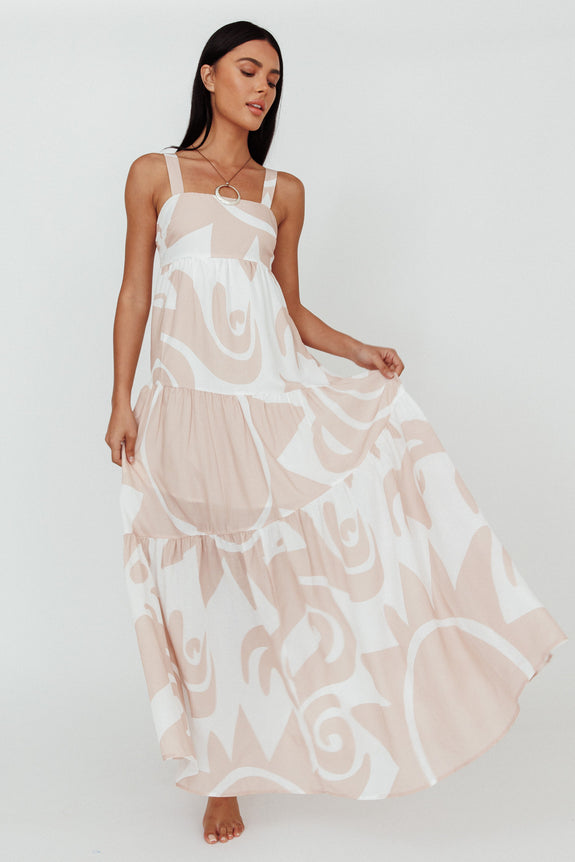 Indianna Square Neckline Maxi Dress Printed Sand/White
