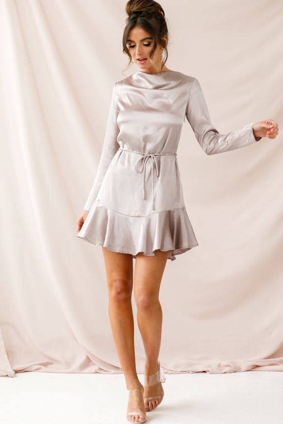 Interstellar Ruffle Hem Long Sleeve Dress Champagne