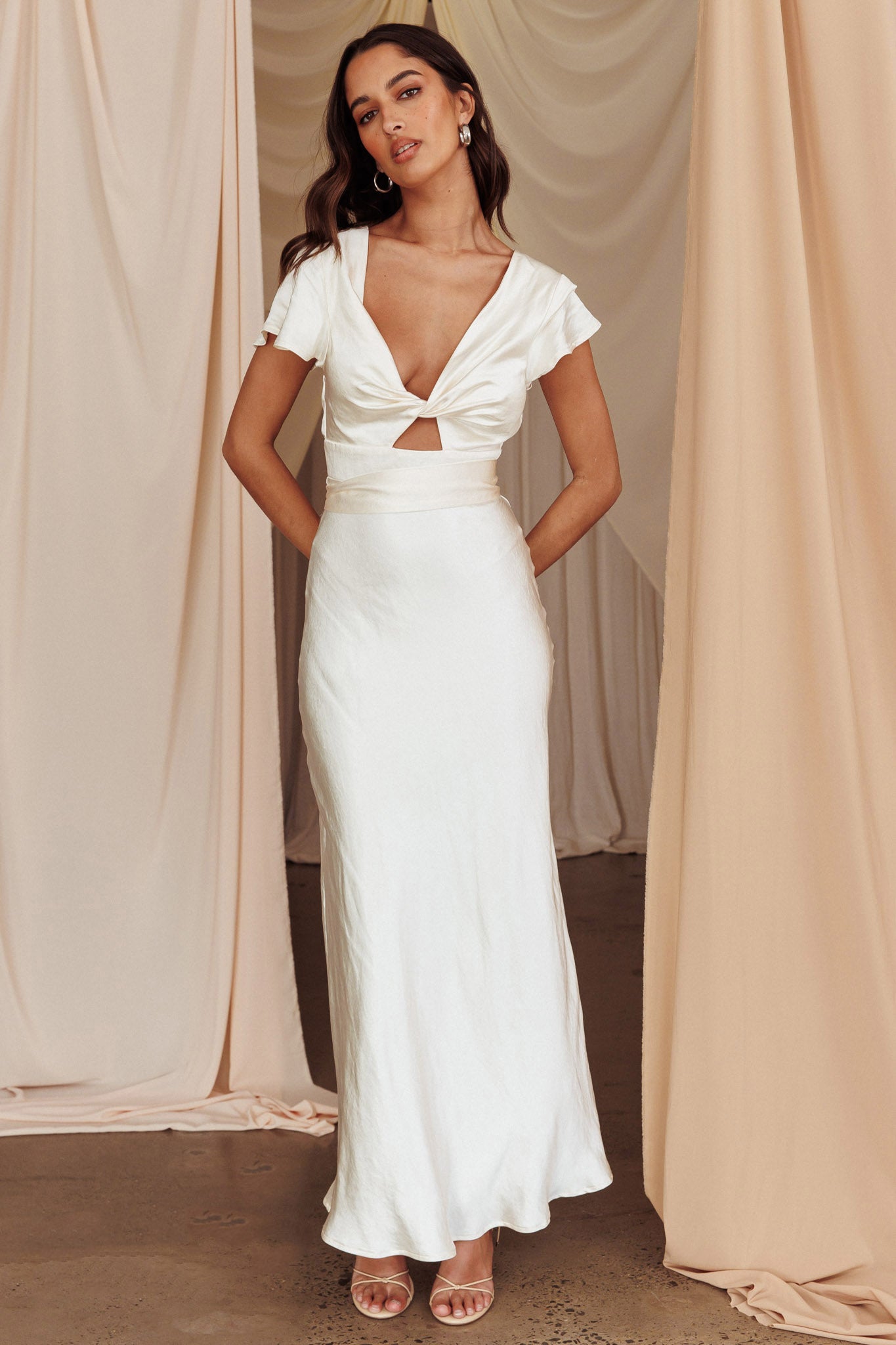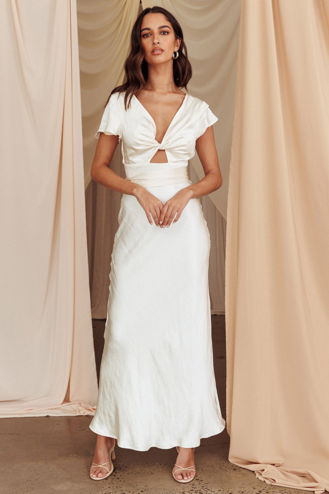 You will be flooded with compliments in our dreamy Irena maxi dress. It features short, flutter sleeves and a twist detail in the bust. It's perfect for bridal events or a special occasion celebration. Team it with strappy, tie -p heels and a clutch for a look that will turn heads.