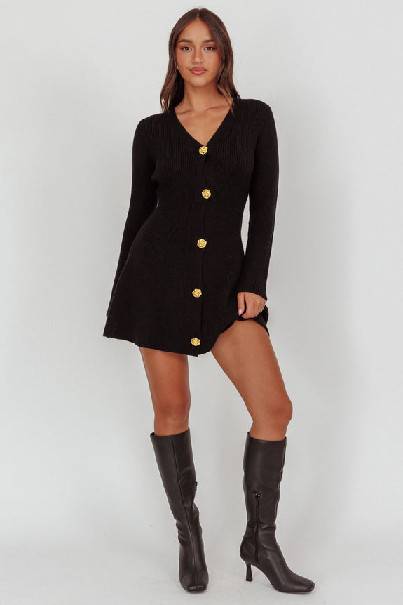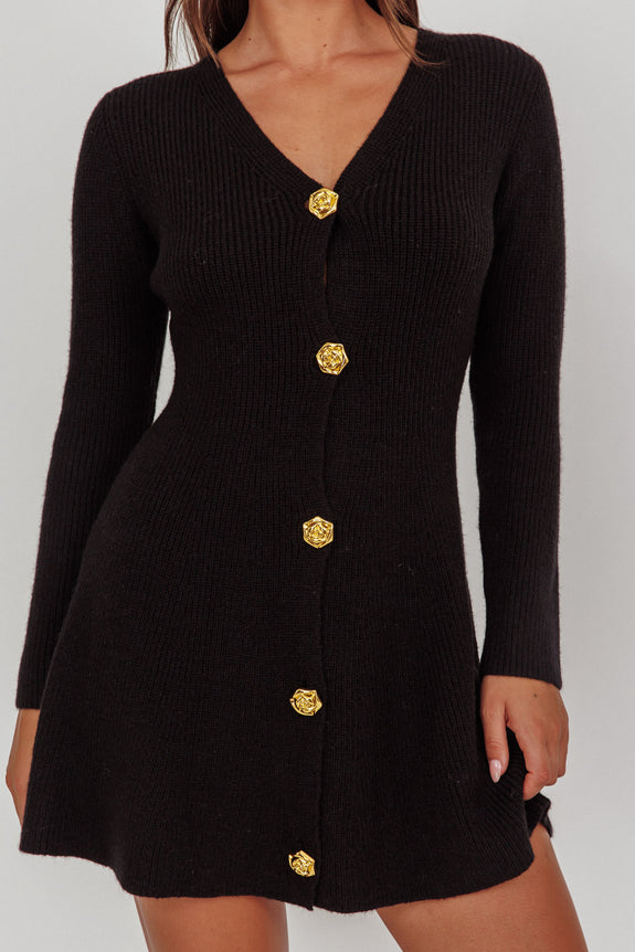 Make an entrance in our super cute Irma mini dress. It features a soft, knit fabric and gorgeous gold rose buttons. Wear it on a flirty first date teamed with boots and a saddle bag for an unforgettable look.