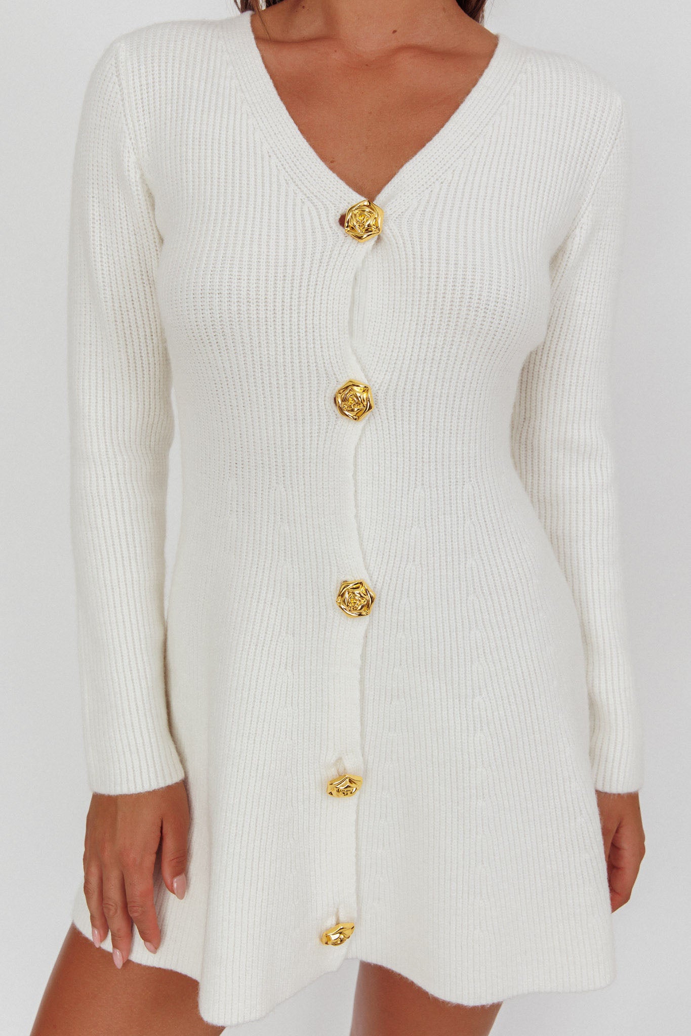 Make an entrance in our super cute Irma mini dress. It features a soft, knit fabric and gorgeous gold rose buttons. Wear it on a flirty first date teamed with boots and a saddle bag for an unforgettable look.