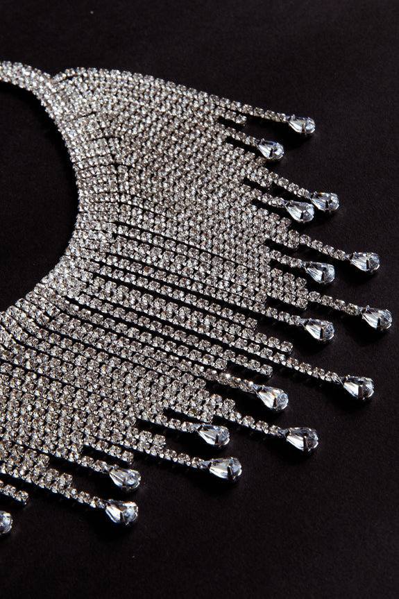 Our Isadora necklace is a major moment. Featuring cascading diamante strands with pear-shape crystal drops; this one is sure to get you all the attention! Perfect for a glam homecoming look or special occasion celebration. Team it with a satin mini dress for a luxe look we are loving.