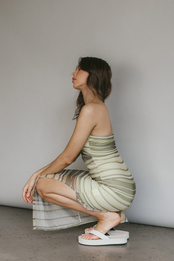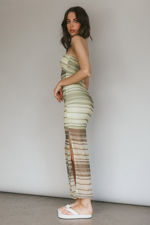 You will look super chic in our gorgeous Island Life maxi dress. Featuring a strapless style and mesh overlay. Perfect for weekend brunch with your besties teamed with retro sunglasses and a tote.