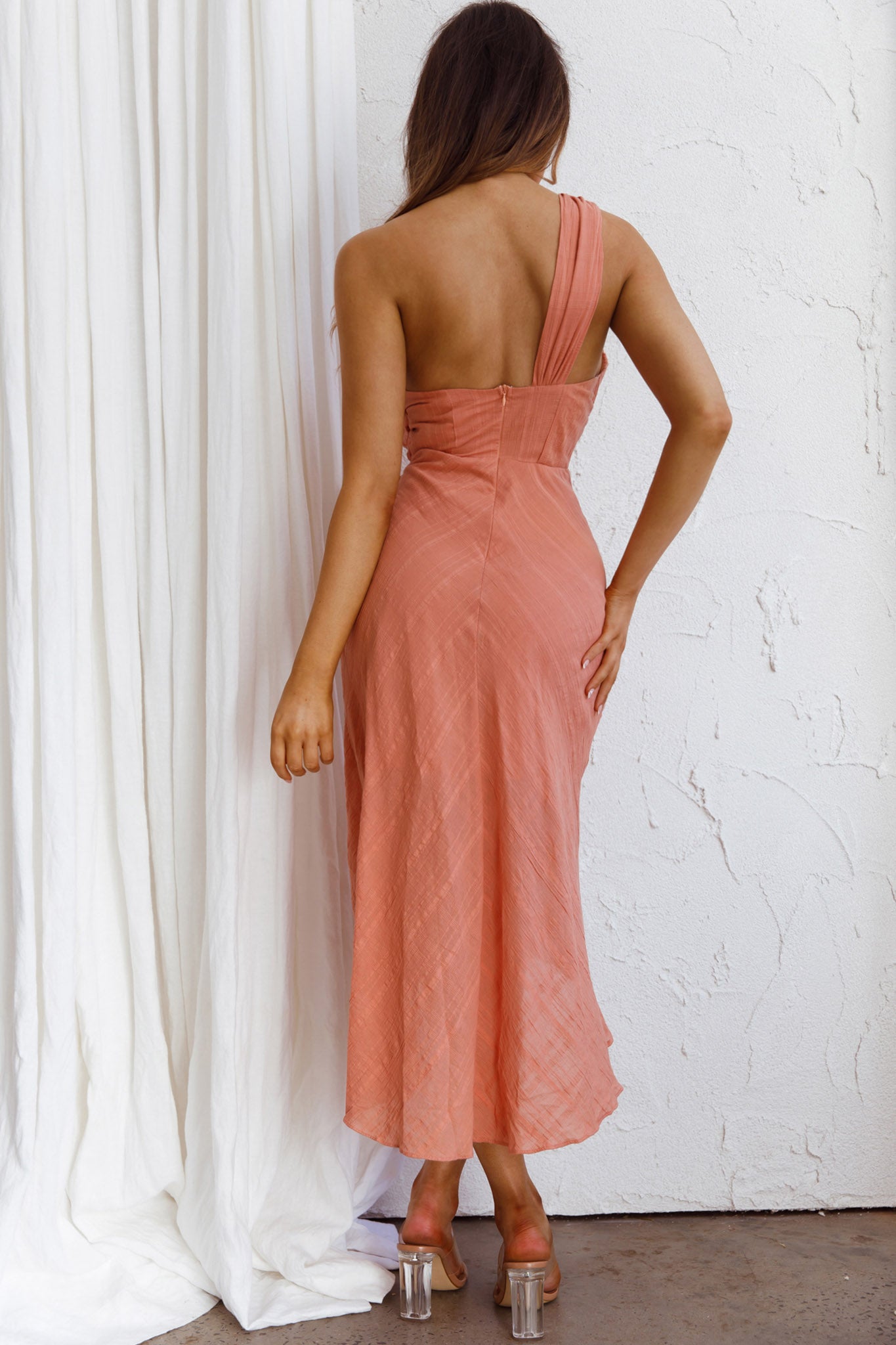 Island Time One-Shoulder Midi Dress Peach