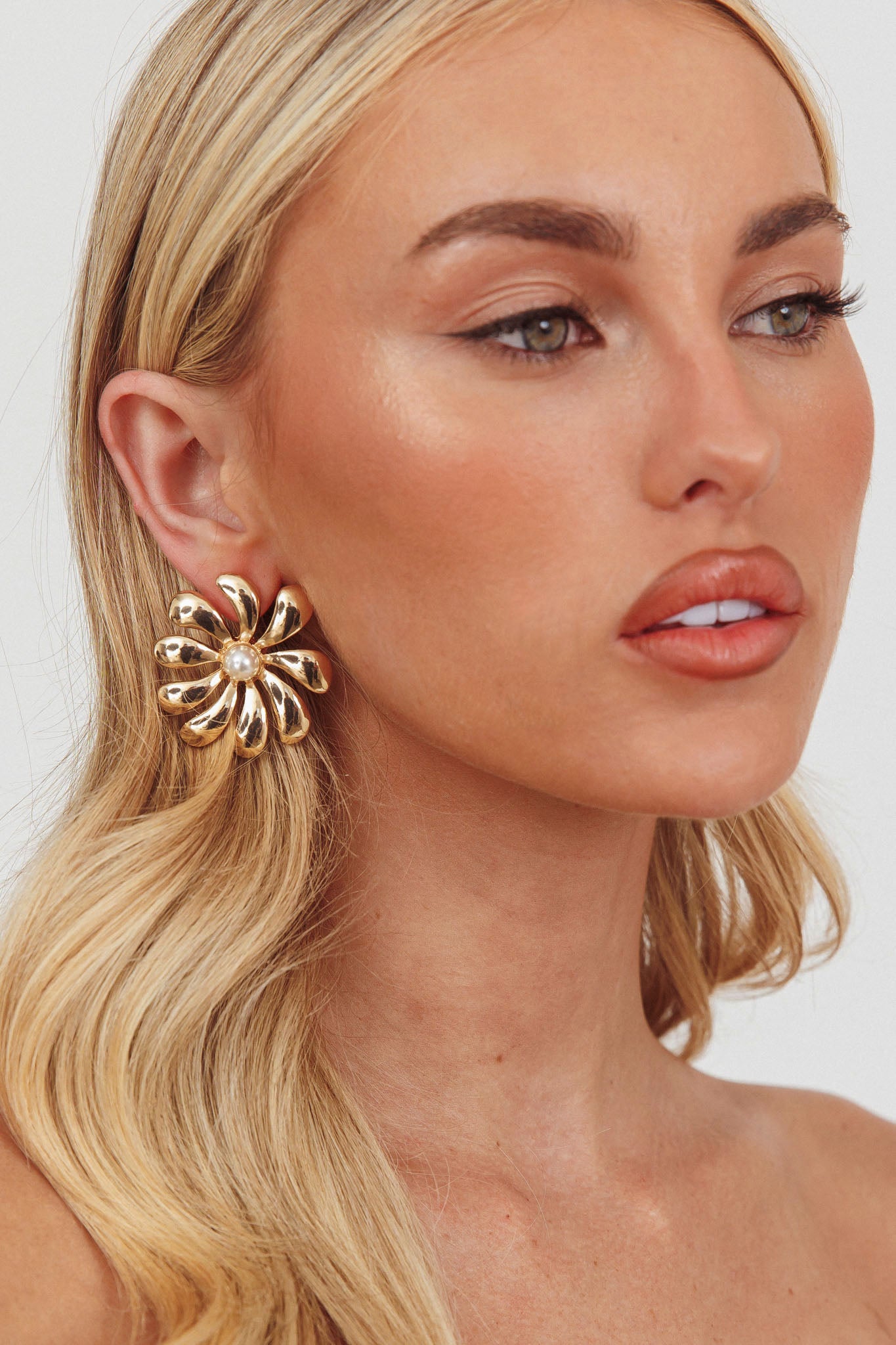 Elevate your look with our stunning Izzy earrings. They feature a pretty flower design and pearl accent and are perfect for a date night or a glam event. Team them with our Damsel dress for a look that will make jaws drop.