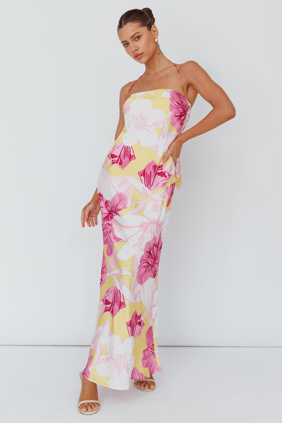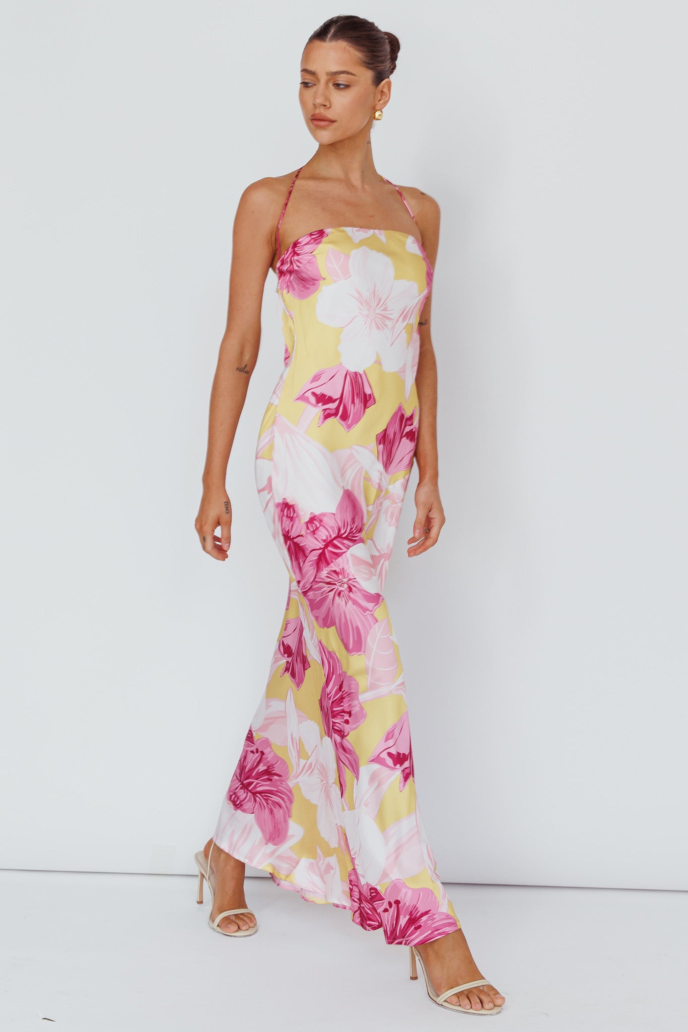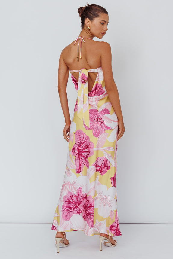 Jacquelynne Halter Cowl Back Maxi Dress Pink