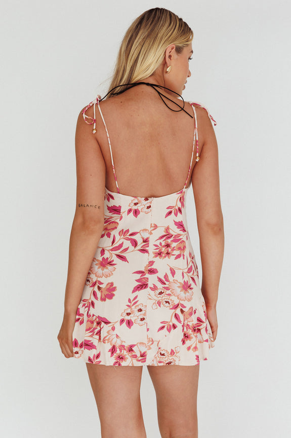 Jadyn Tied Shoulder Mini Dress Floral Cream