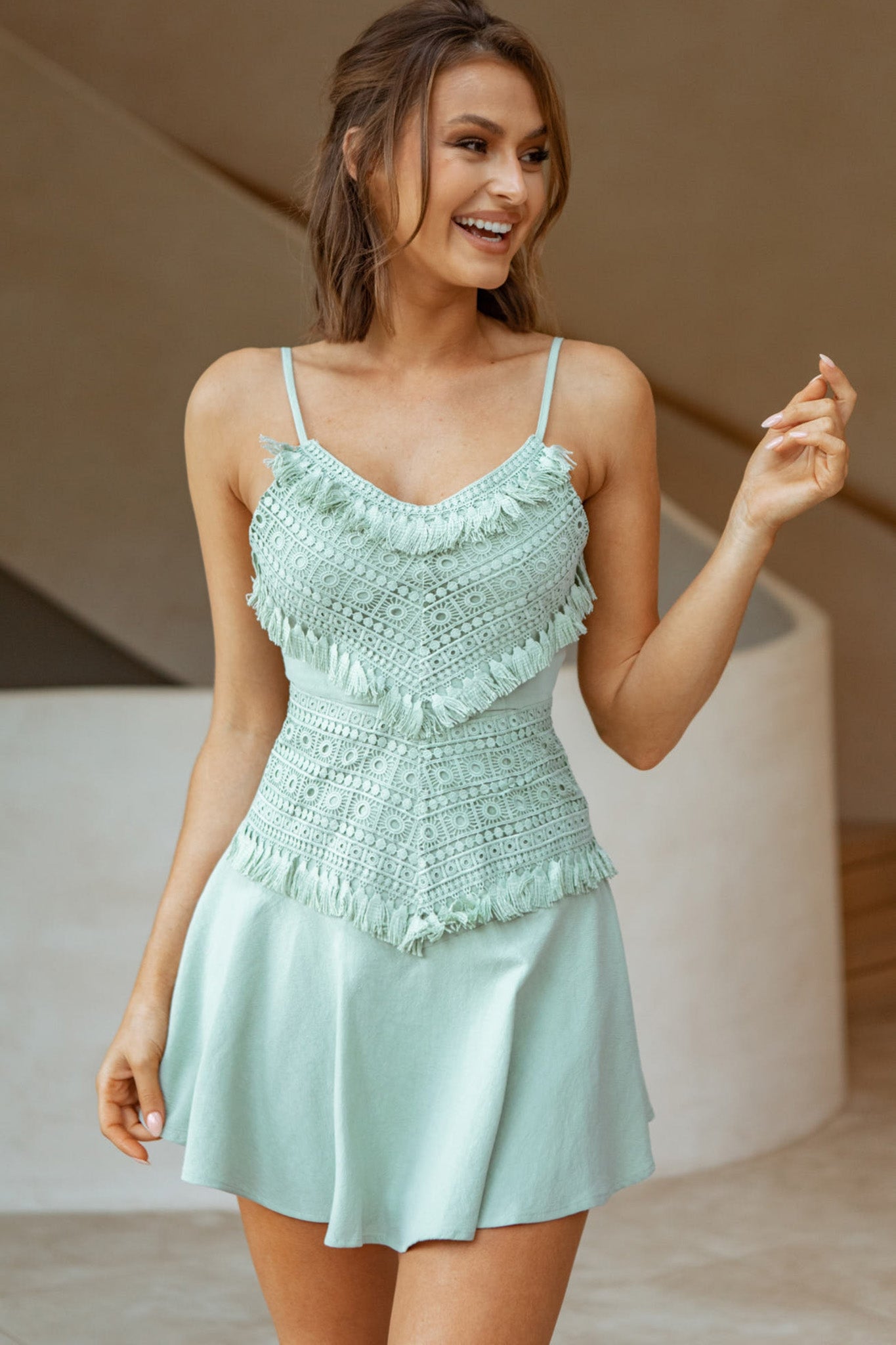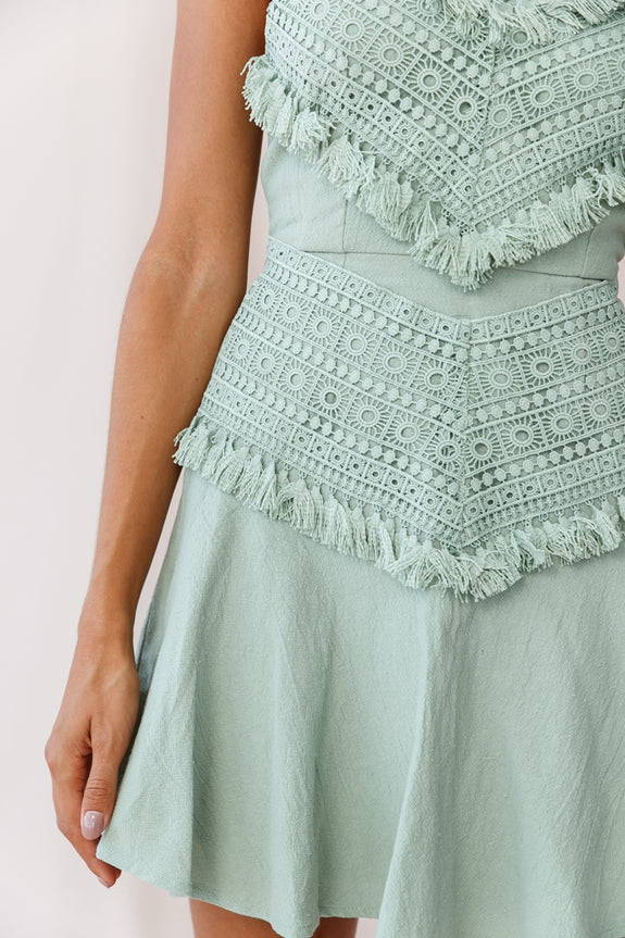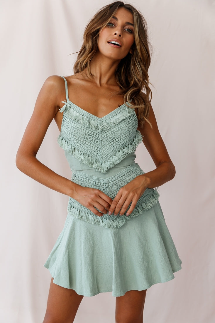 Make a statement in this unique, A-line dress featuring tassel-trimmed appliqué, crepe fabric, tie-back fastening and spaghetti straps. Perfect for a movie date with bae or brunch with the gals. Team it with strappy nude heels and a bright lip and get ready to turn heads.