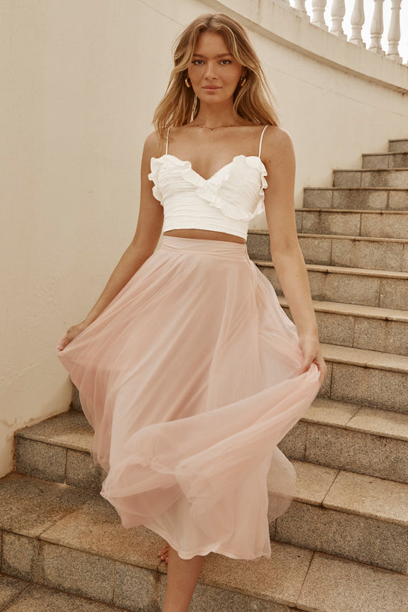 You are one classy lady in our elegant Jasmine midi skirt. Fully lined, it features a romantic mesh fabric throughout, A-line cut and elasticated waist. Perfect for brunching in Beverly Hills teamed with a crop top and mules.