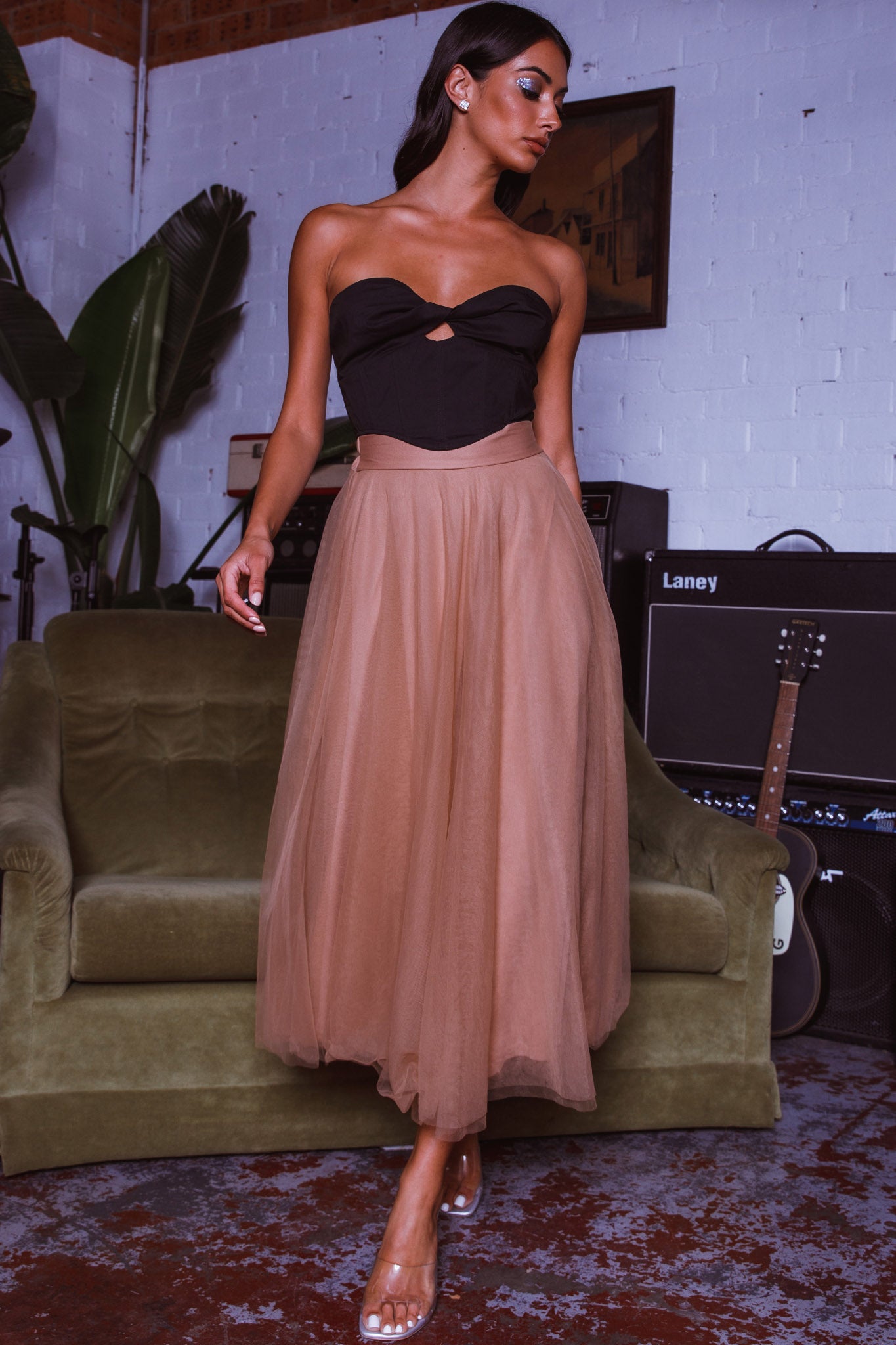 You are one classy lady in our elegant Jasmine midi skirt. Fully lined, it features a romantic mesh fabric throughout, A-line cut and elasticated waist. Perfect for brunching in Beverly Hills teamed with a crop top and mules.