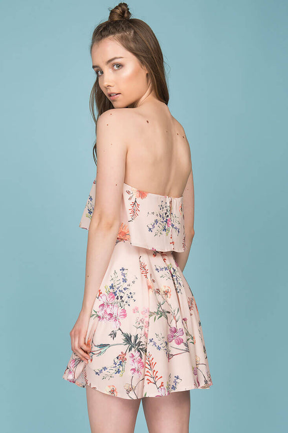 Jemma Floral Going Out Dress Beige
