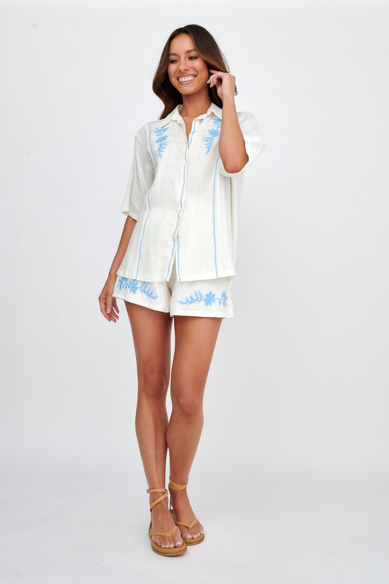 The weekend is calling and we are living for our pretty Jeni shirt. Featuring floral embroidery detail, it's perfect for a lazy weekend, catching up with your girls and strolling your fave vintage markets. Team it with its matching shorts and sneakers for a casual-chic look we are loving.