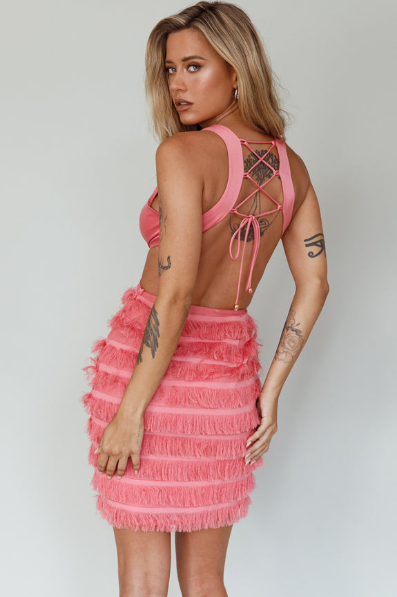 You'll be unforgettable in our gorgeous Jolie mini dress. We are obsessed with the fringing detail in the skirt and open, lace-up back. Perfect for a bachelorette or birthday soiree. Team it with diamante heels and a satin clutch for a look that will make jaws drop.