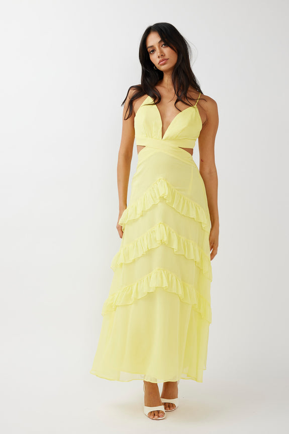 Steal the limelight in our gorgeous Joss dress. We are in love with its girly, ruffle trim and strappy tie in the back. It's perfect for a date night or birthday bash! Team it with mules and a saddle bag for an elegant look.