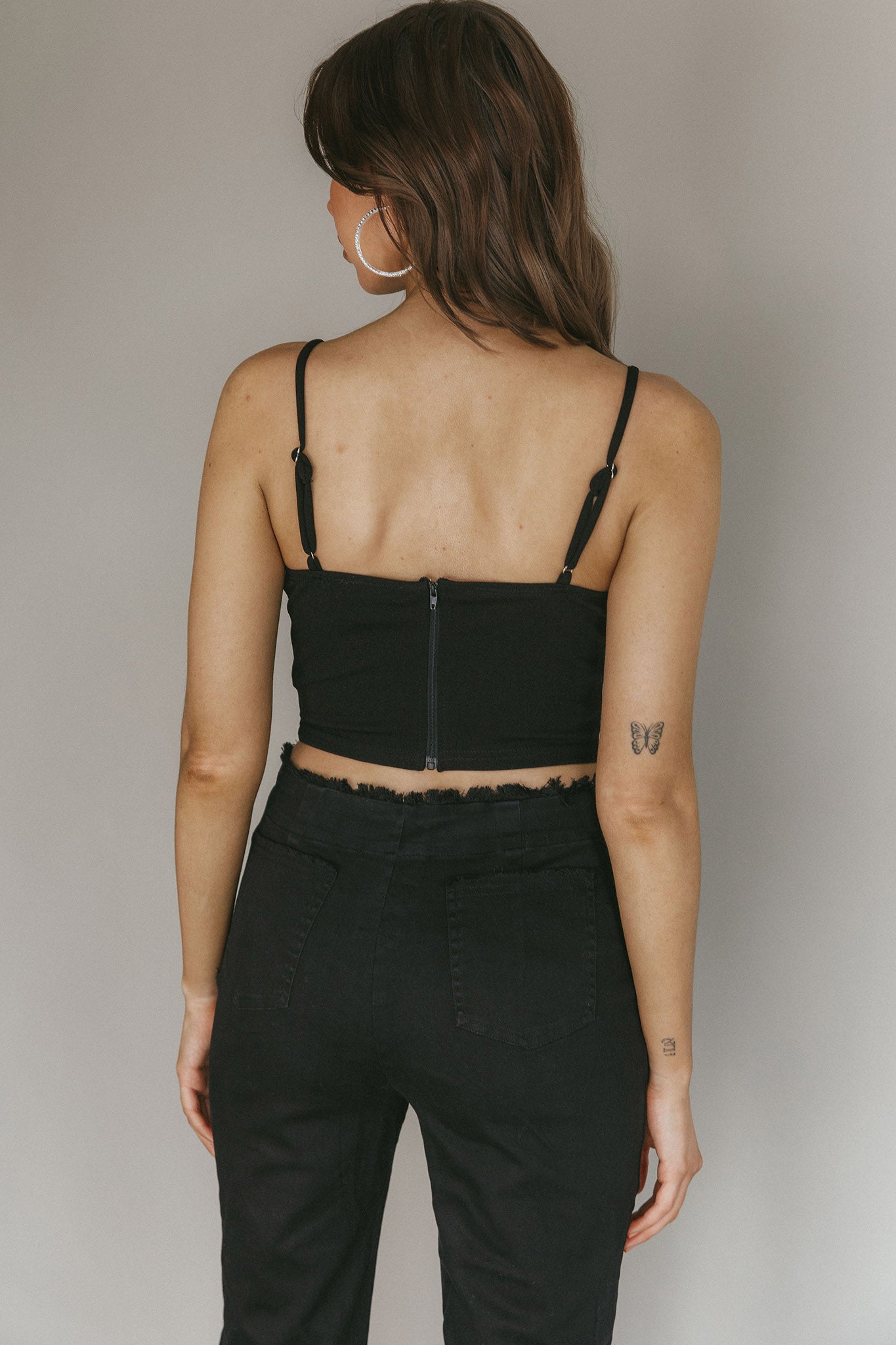 Hey there, cutie! You will go straight to the best-dressed list in our on-trend Jovi crop top. Featuring feather embellishment along the bust line, it's sure to get you noticed! Team it with our Mahla flare pants for a look that'll turn heads everywhere you go.