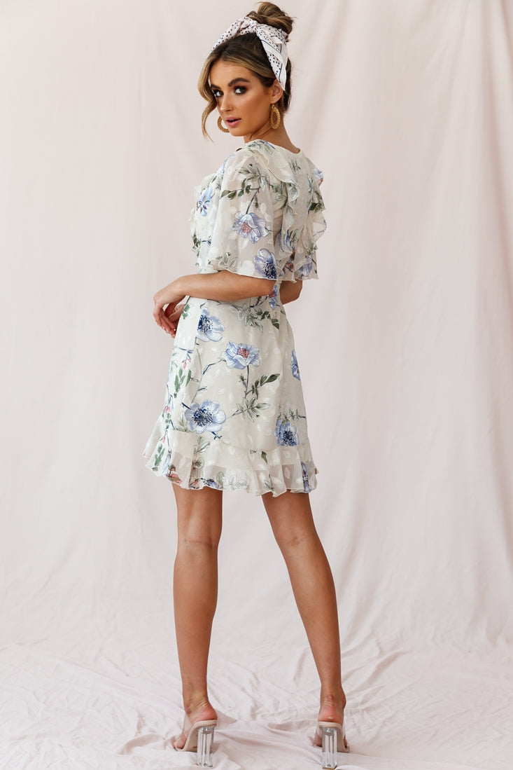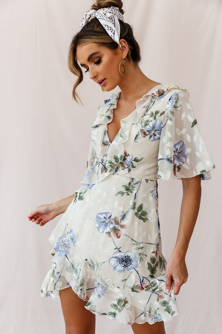 Every day will feel like a romantic Spring day in our June dress. Perfect for Beverly Hills brunches or a flirty first date to the museum with your crush. Featuring fluttery angel sleeves, asymmetrical hemline, and pretty ruffle details. Team it with canvas wedges for a casual look or strappy nude heels and gold hoop earrings to dress it up. Super cute!