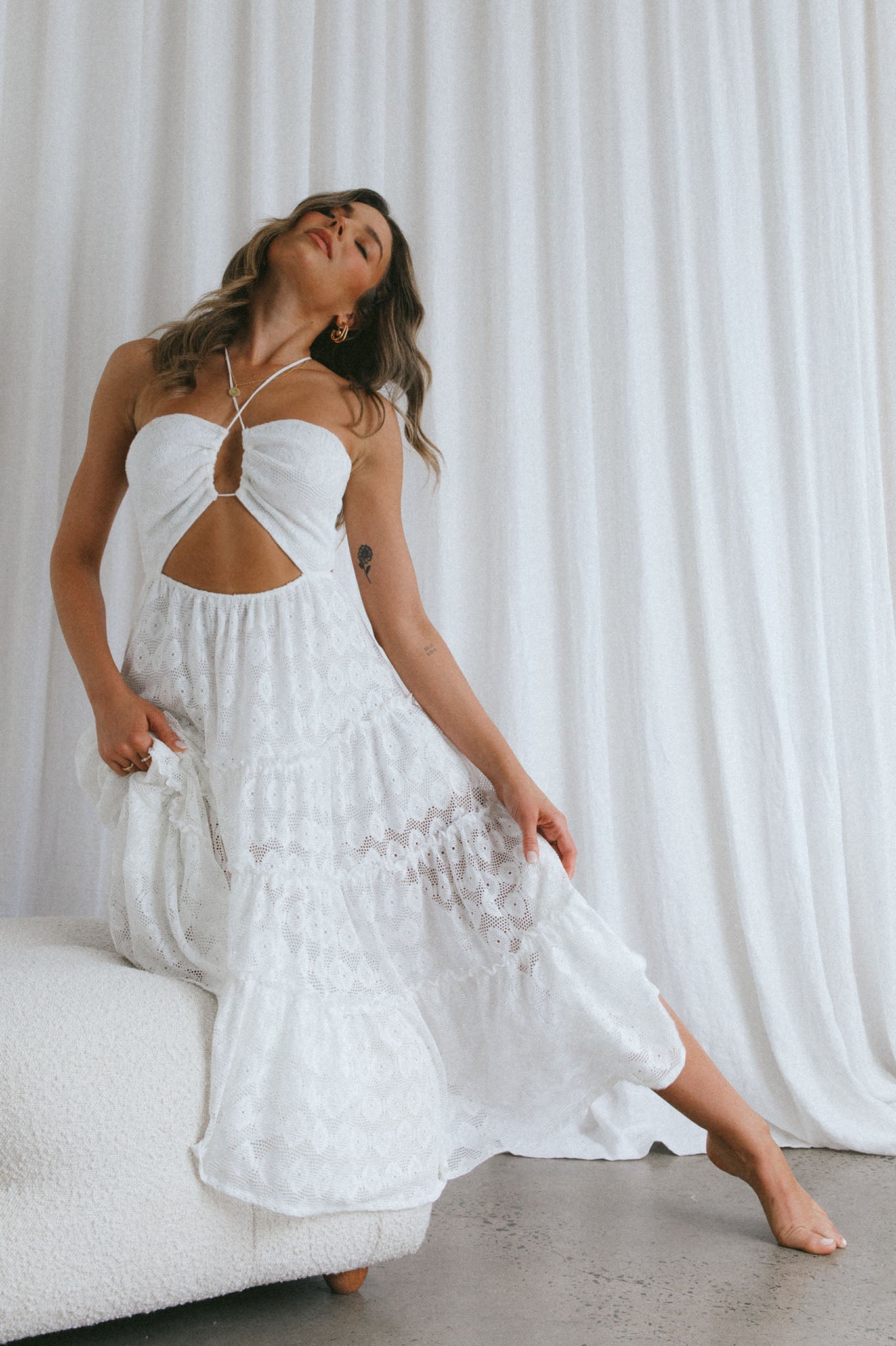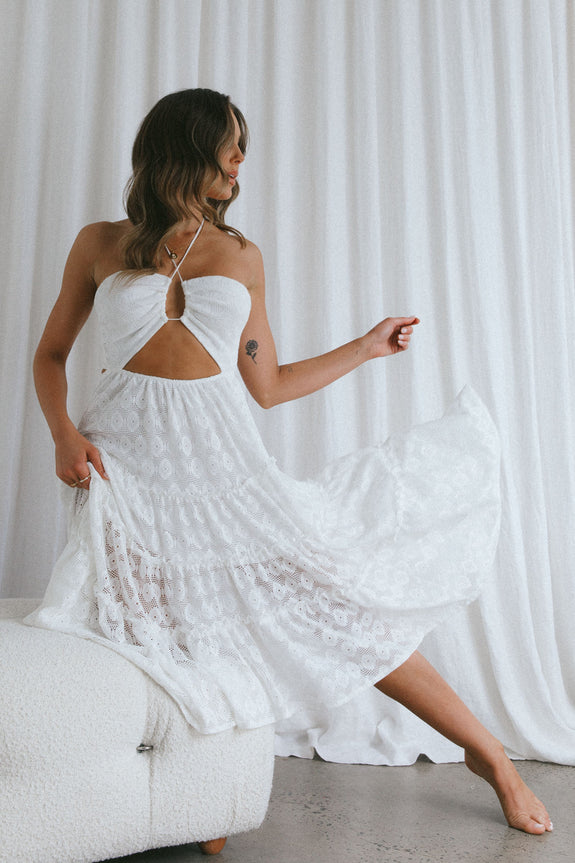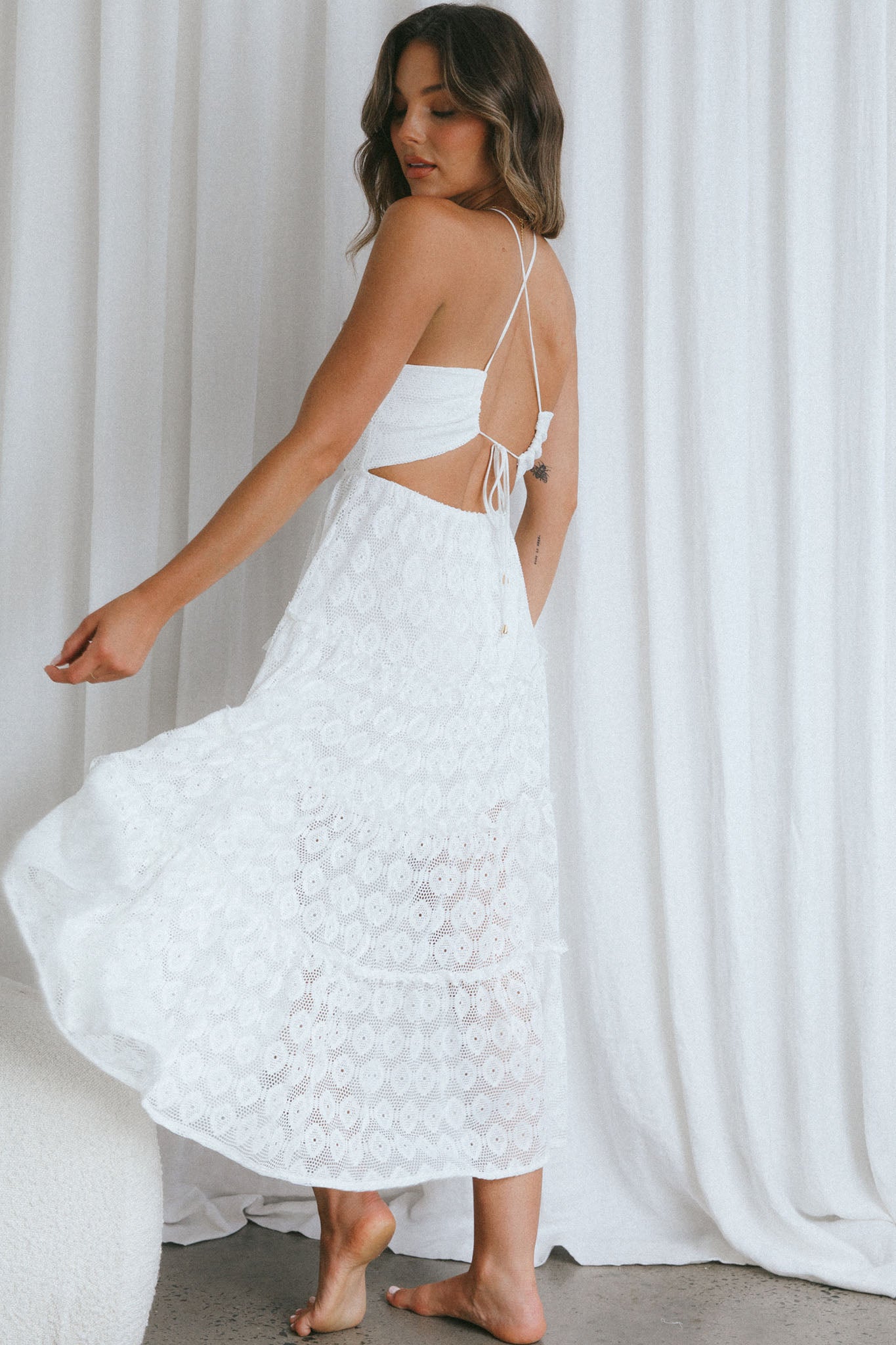 Breeze through your day in our stunning Just Cruise midi dress. We are in love with the strappy back and pretty, lace overlay. Perfect for weekend brunch with your besties. Team it with tan mules and a tote for a look we're in love with.