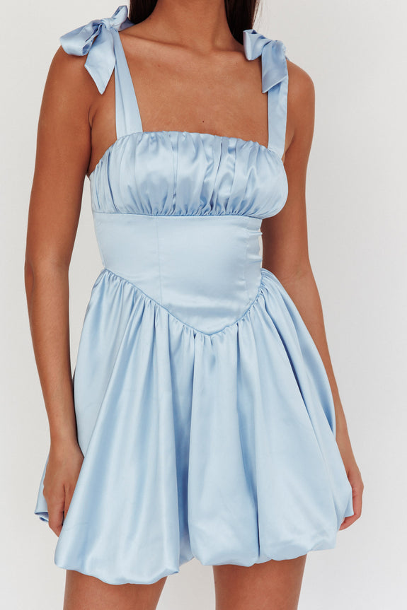 Just Magic Tied Shoulder Bubble Hem Mini Dress Baby Blue