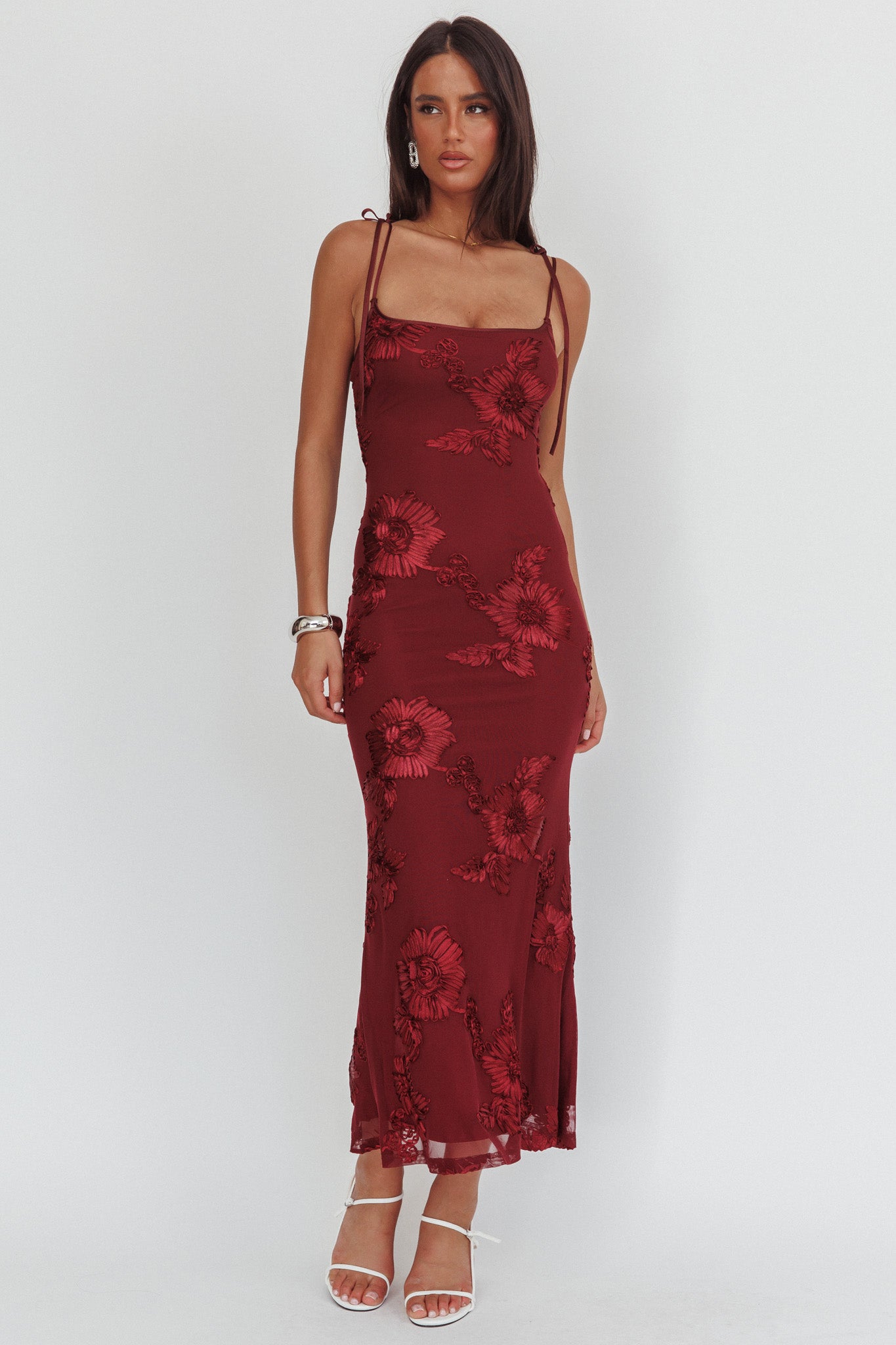 Kaela Tied Shoulder Maxi Dress Embellished Wine