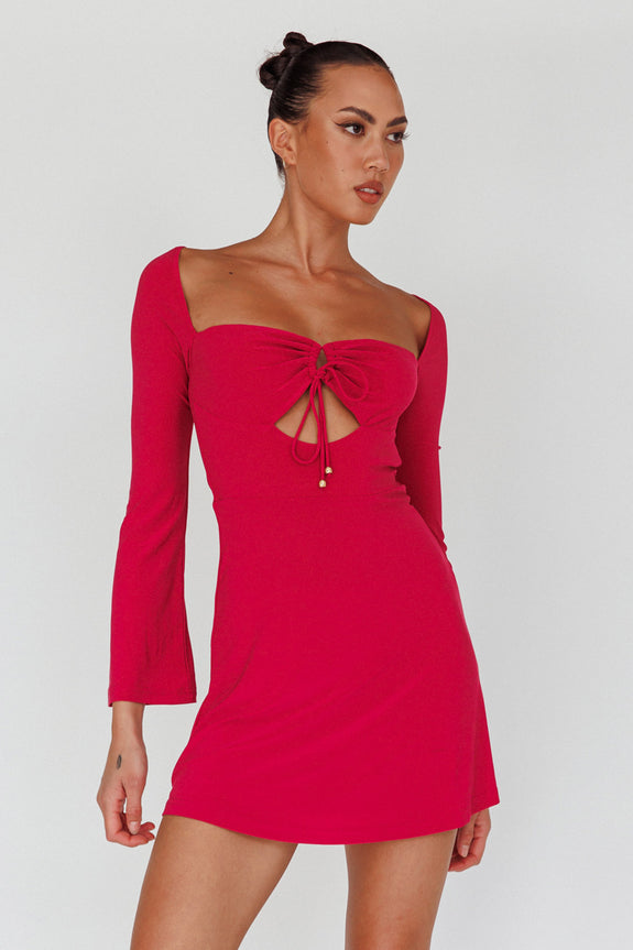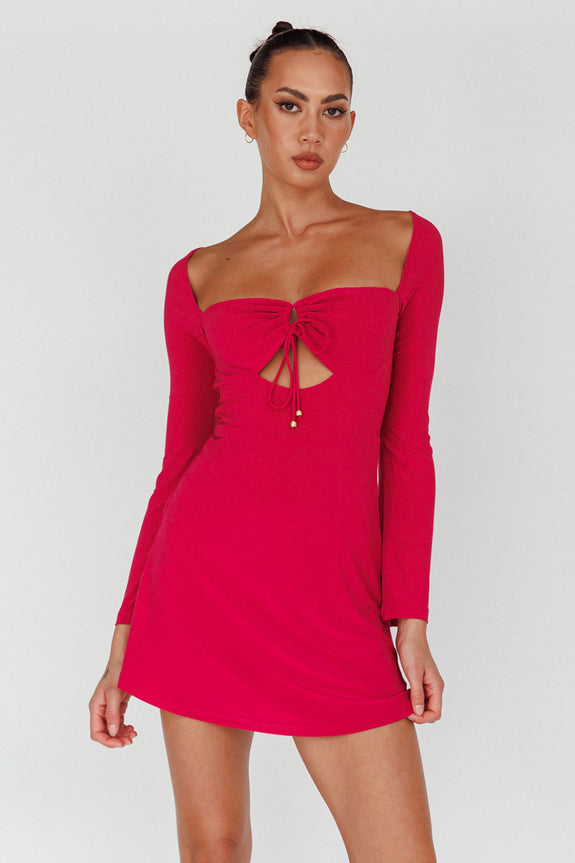 Jaws will drop when you strut by in our chic Kaleidoscope mini dress. Featuring a drawstring keyhole in the bust and long sleeves. Perfect for a special birthday celebration! Team it with boots and a saddle bag for a hot look we are loving.