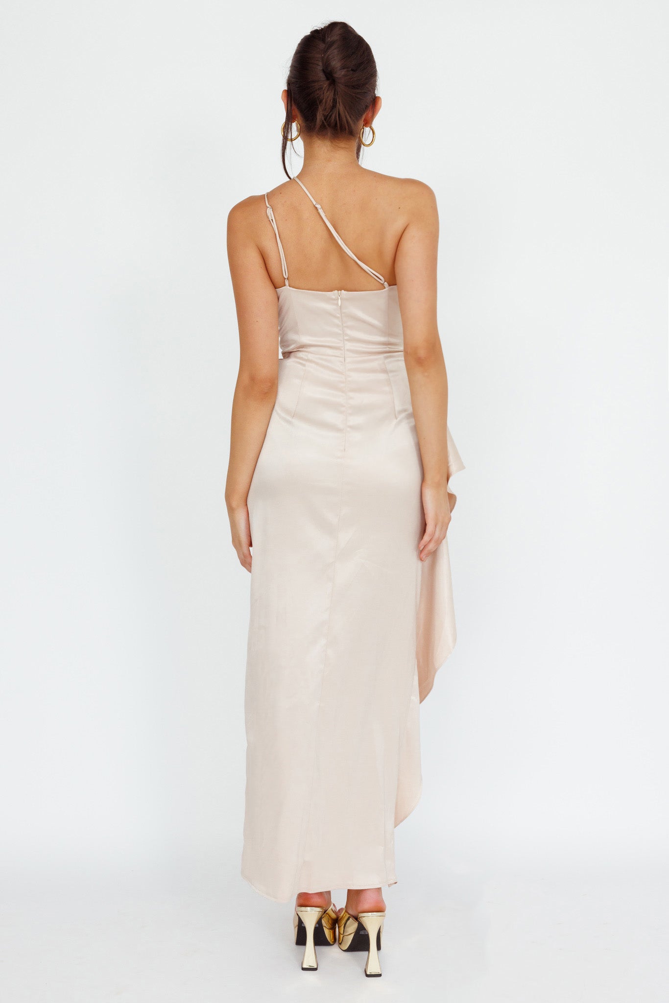 Kamillia One-Shoulder Split Midi Dress Champagne