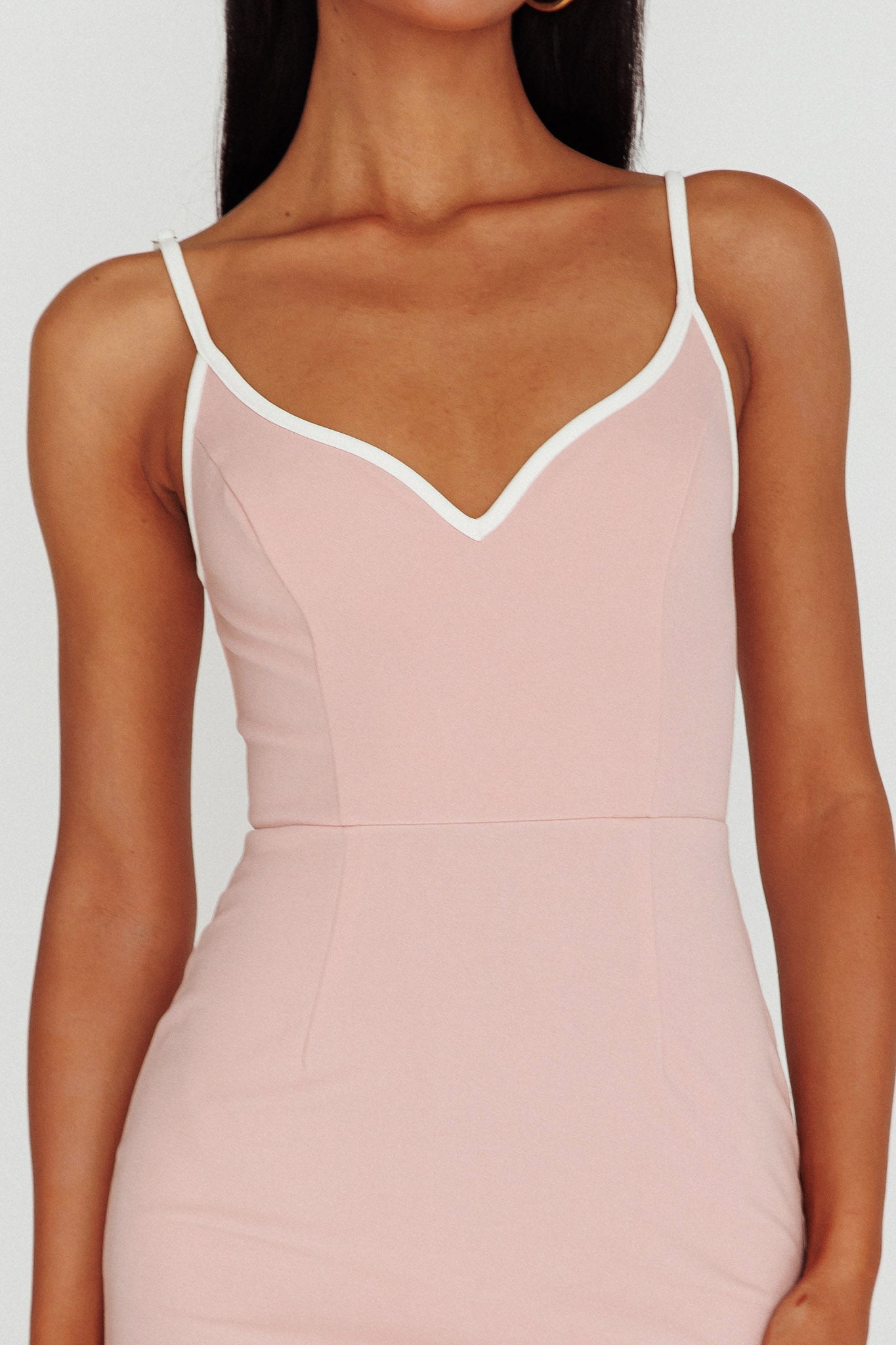 Hello, gorgeous! You will steal the spotlight in our pretty Kandis midi dress. We are loving its curved V-neckline and white trim detail. Perfect for a date night teamed with a saddle bag and mules for a chic look that will turn heads.