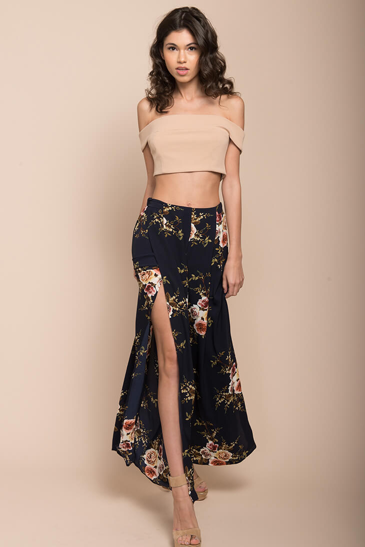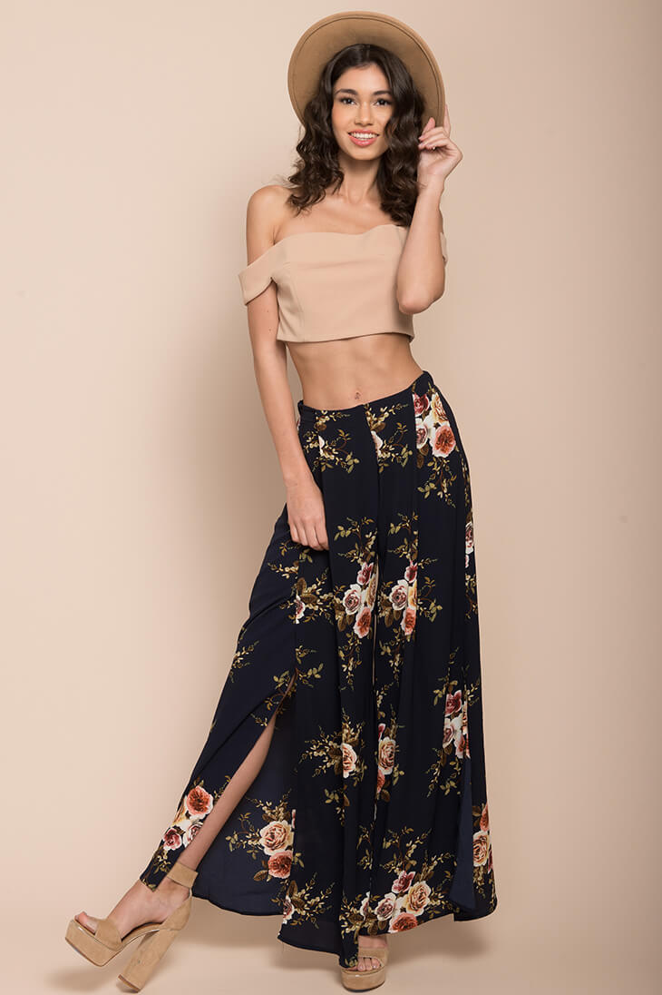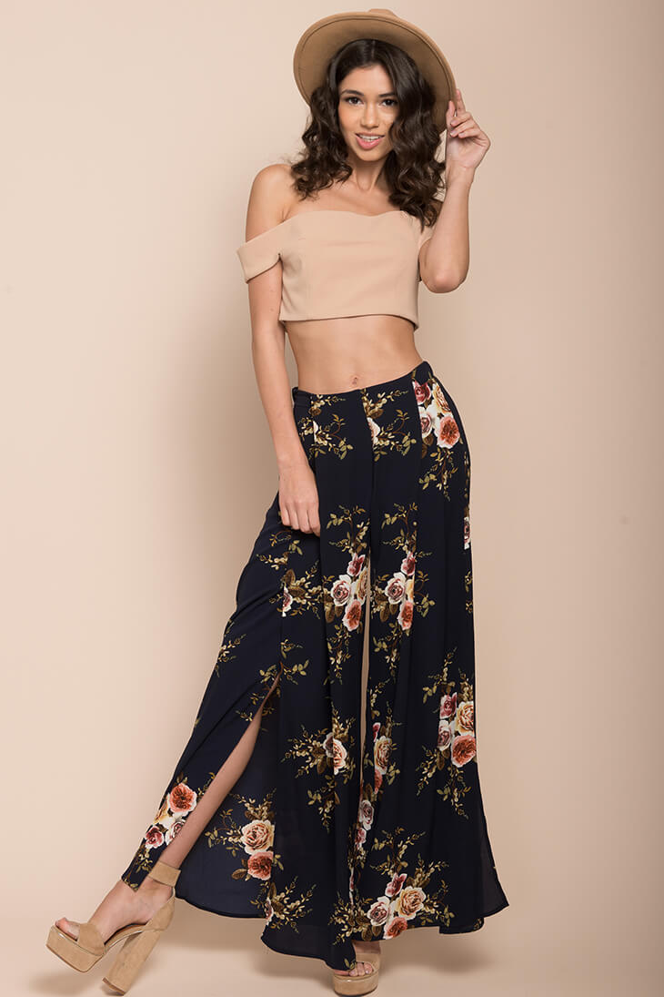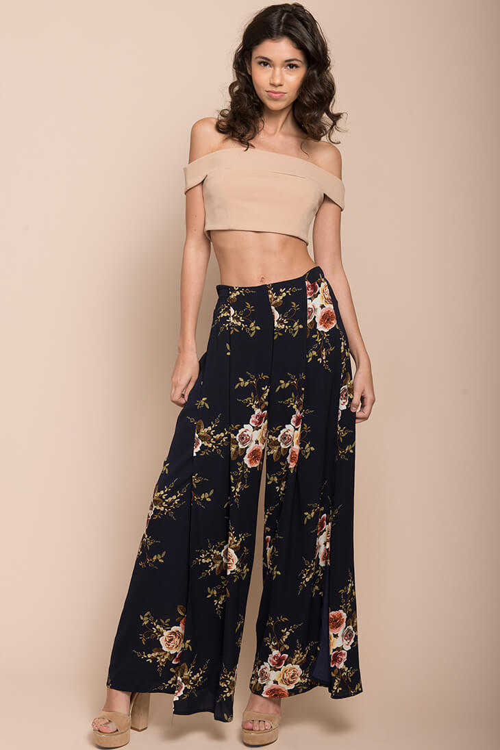 Boho high slit pants are a much-needed wardrobe addition. Classy pleats and fun florals bring a sense of life to these statement pants. Pair with a long-sleeved bodysuit and high heels.