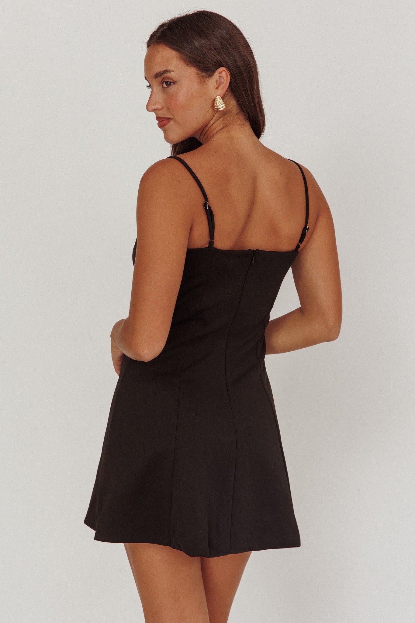 Keiosha Pleated Sweetheart Neckline Mini Dress Black