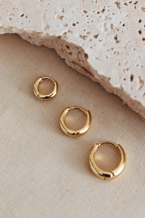 Elevate your look with our super cute Kelly earrings set. They feature a chunky, huggie design and are perfect for a date night or glam event. Team them with our Nadia dress for a look that will stop traffic.