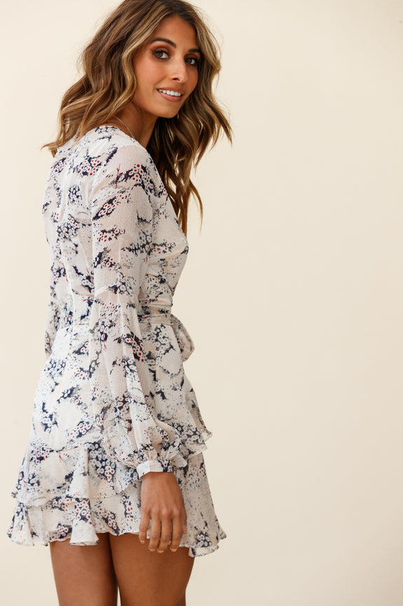 Work gala? Girls' night out? This pretty dress has you covered. Partially lined, with its on-trend ruffles, long balloon sleeves and flattering, faux-wrap neckline, you'll be turning heads everywhere you go. Pair it with single strap nude heels or ankle boots for a look we are loving.